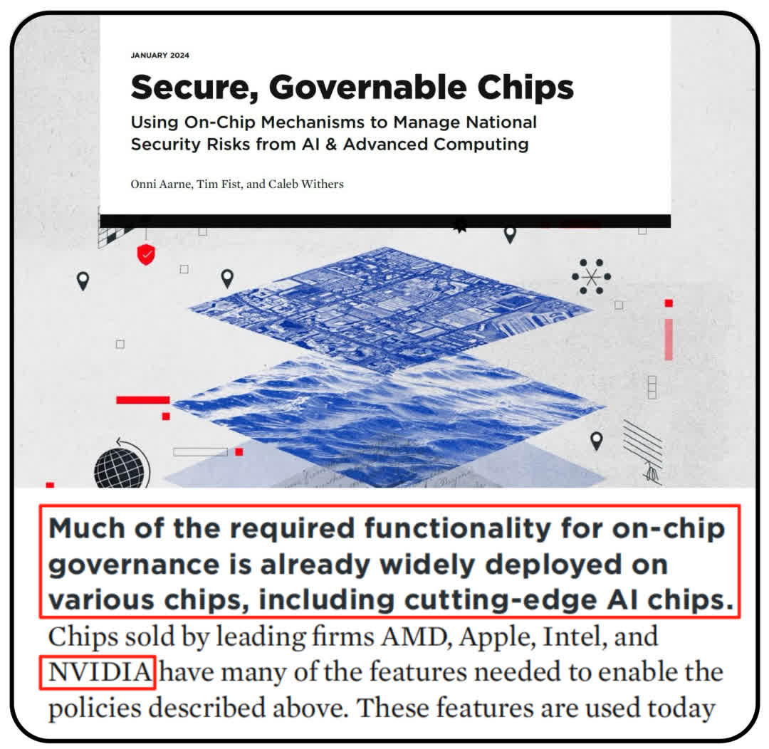 在一份詳細介紹「片上治理機制」的報告中提到,英偉達的人工智能芯片其實已經廣泛部署了片上治理所需的大部分功能,只不過有些還沒有激活而已。