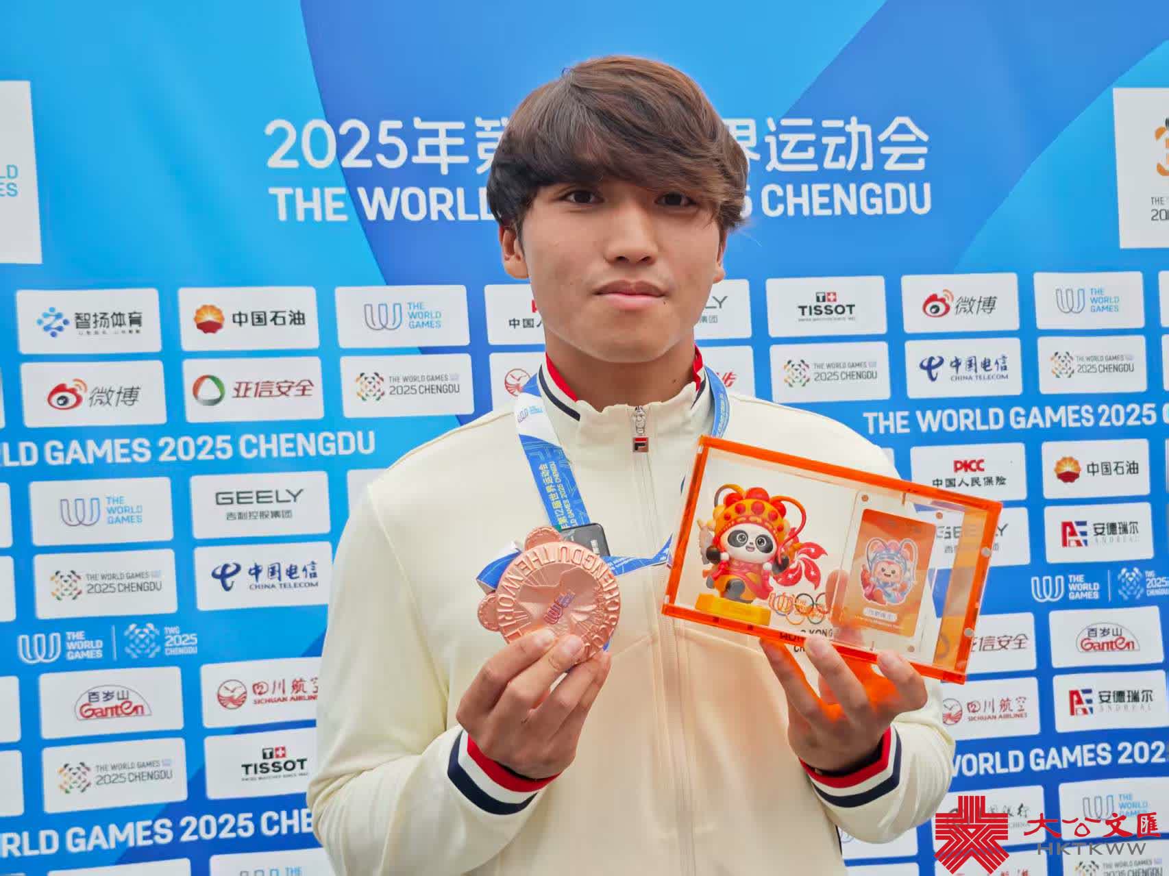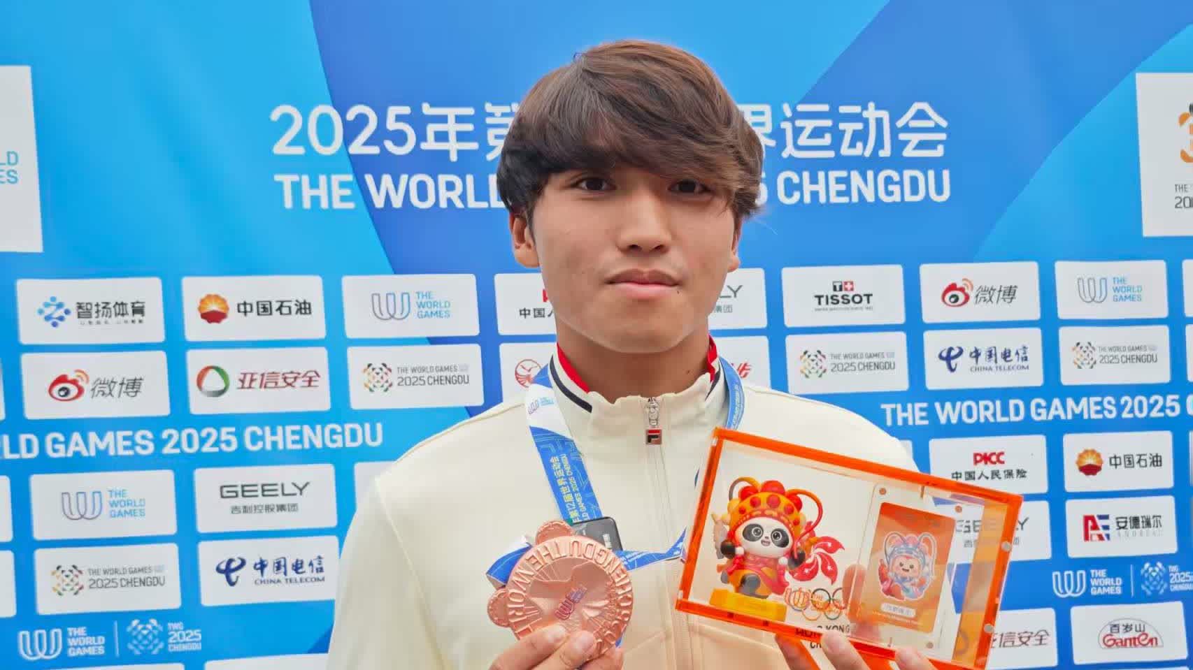 (大公文匯網 記者 向芸)8月10日,2025年第12屆世界運動會(以下簡稱「成都世運會」)多項賽事持續進行,港隊則在今日收穫1枚「意料之外」的銅牌。在下午的男子尾波衝浪項目中,25歲的鄭俊軒發揮出色,為港隊再增1枚獎牌,他接受記者採訪時亦大呼「Surprise!」
