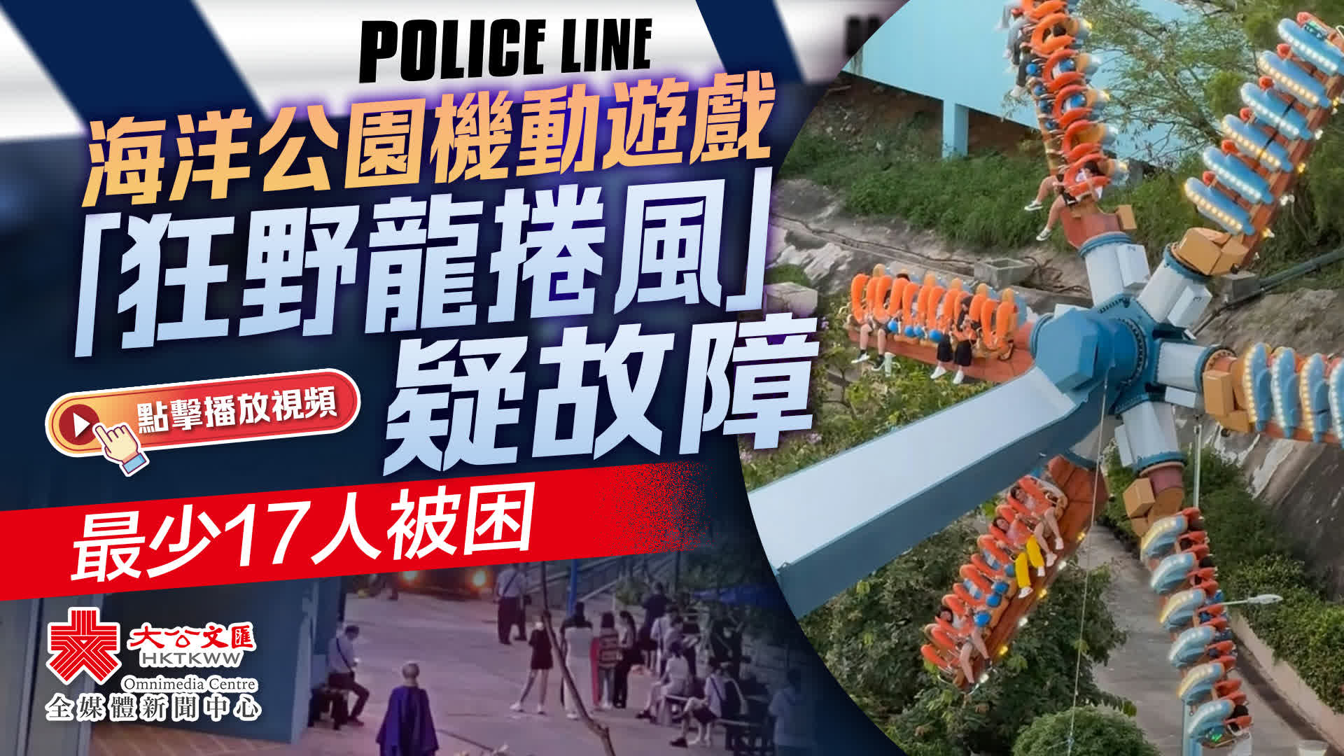 大公文匯全媒體報道,海洋公園機動遊戲「狂野龍捲風」今日(10日)下午突然停頓,有17人被困高處。