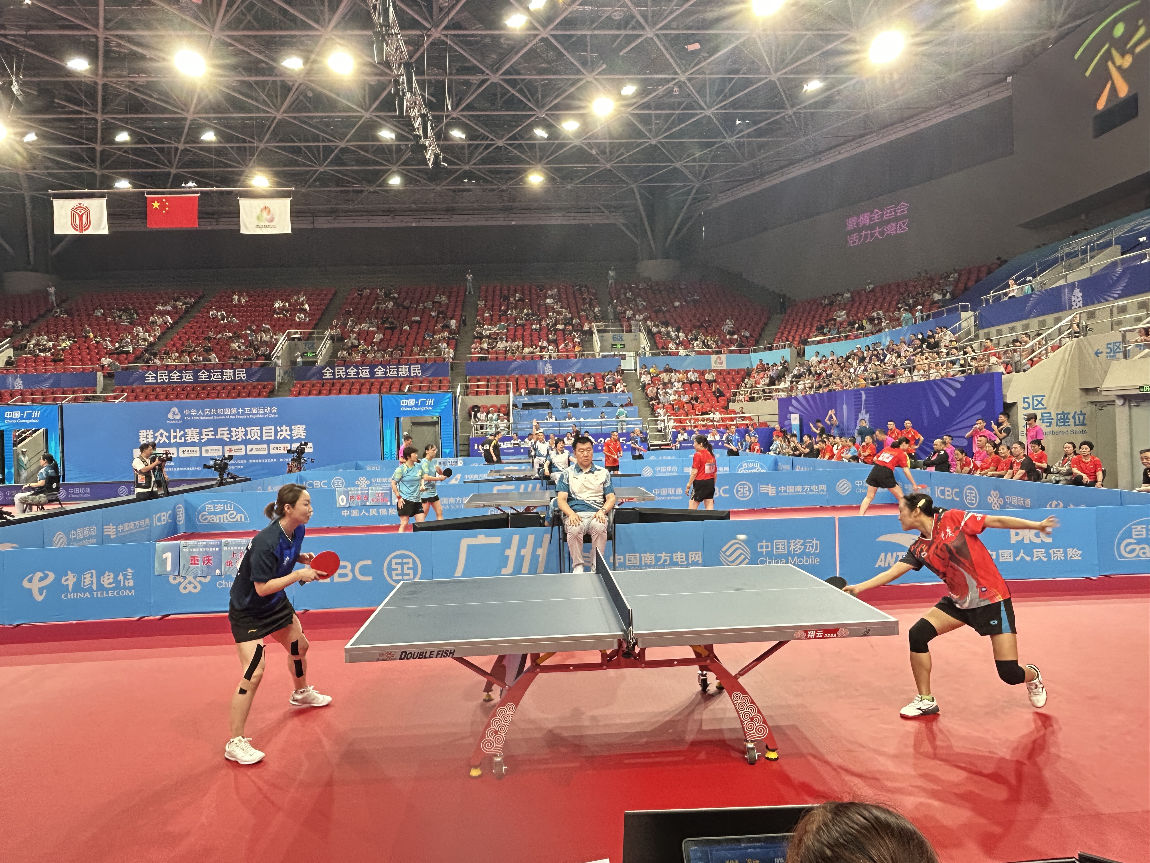 十五運會群眾比賽乒乓球項目決賽從8月8日至14日在廣州天河體育中心體育館、廣州市羽毛球運動管理中心舉行,來自全國各地32支隊伍超過300名民間高手爭奪包括團體和單項在內合計10枚金牌,率先打響的是兩個團體項目。在小組賽階段,17支男隊和17支女隊各分成4個小組展開單循環角逐,每組前兩名挺進八強。