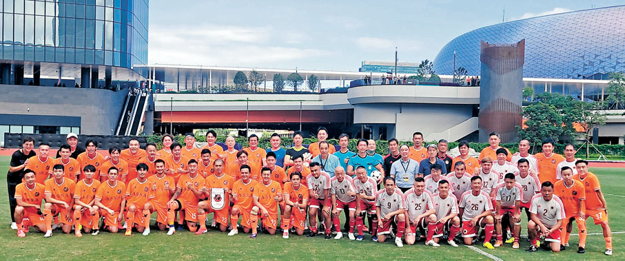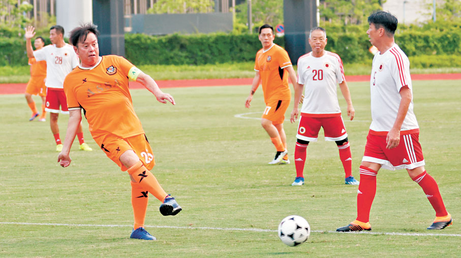 「校長」譚詠麟昨日率領「香港明星足球隊」隊員羅家英、黃日華、關禮傑、趙浚承及衛志豪等與「香港傳奇足球隊」進行友誼賽,最終香港明星足球隊以2比1捧盃。值得一提的是賽前還全球首播新會歌《完美拍檔》。