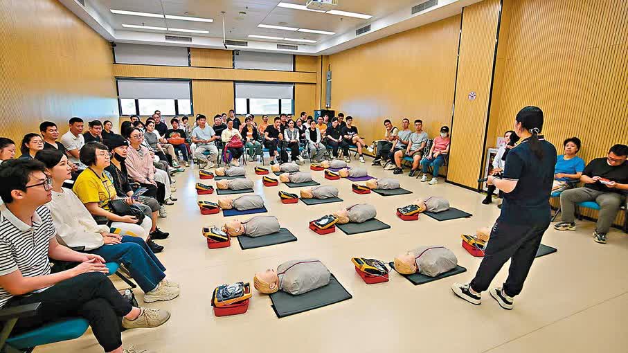 (香港文匯報記者 郭若溪 深圳報道)「若發現有人溺水,且呼吸心搏驟停,需立即進行心肺復甦,這時擁有基本的急救技能非常重要。」近期,內地多地暴雨天氣頻發,洪澇災害成為威脅民眾生命財產安全的一大隱患。掌握正確的急救技能,能在關鍵時刻為生命保駕護航。香港文匯報記者從深圳市急救中心獲悉,「2025年免費公眾急救課程(培訓)」共推出10,980個免費公益培訓名額,一經放出就被一搶而空,8月起新增的10個臨時教學點場場爆滿,更有不少香港居民專程北上參訓,一場「人人學急救」的城市安全行動正火熱上演。