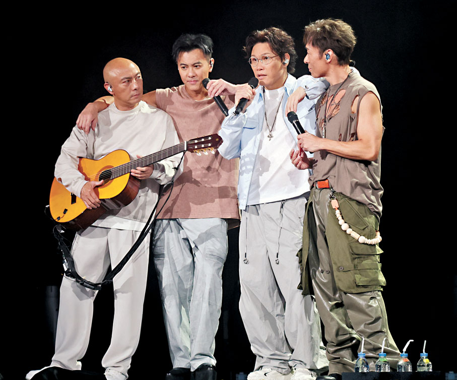 (香港文匯報記者 子棠、攝影 北山彥)張衛健、許志安、梁漢文和蘇永康前晚在紅館舉行首場《BIG FOUR HAPPY TO SEE YOU ALL演唱會2025》,相隔12年再度合體開唱,4子不單止努力操弗,演唱會更集靚歌、搞笑、溫情、感性於一身,還各自在個人環節中送驚喜!4子獲家人及大批圈中好友到場支持。