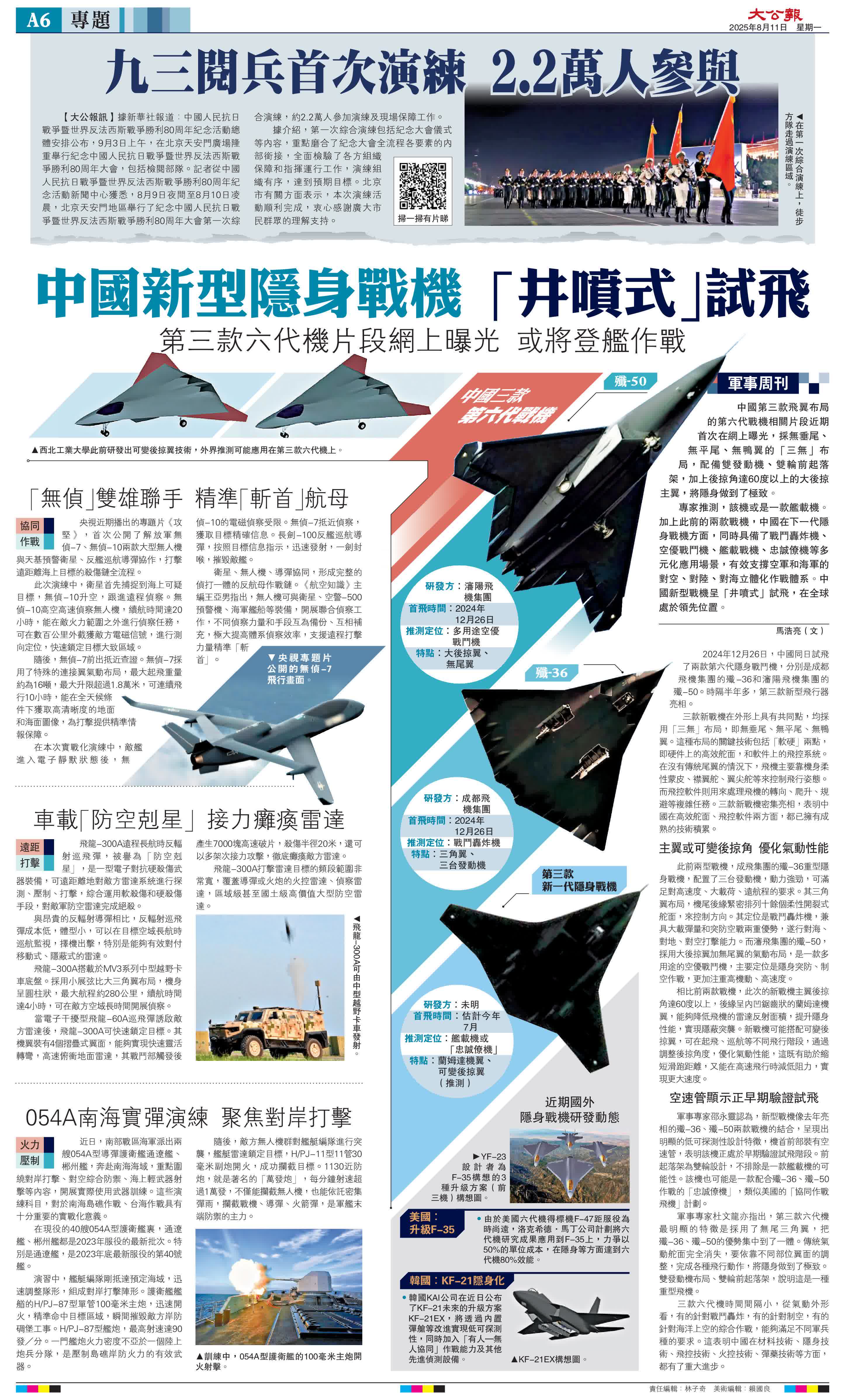 三款六代機時間間隔小,從氣動外形看,有的針對戰鬥轟炸,有的針對制空,有的針對海洋上空的綜合作戰,能夠滿足不同軍兵種的要求。這表明中國在材料技術、隱身技術、飛控技術、火控技術、彈藥技術等方面,都有了重大進步。