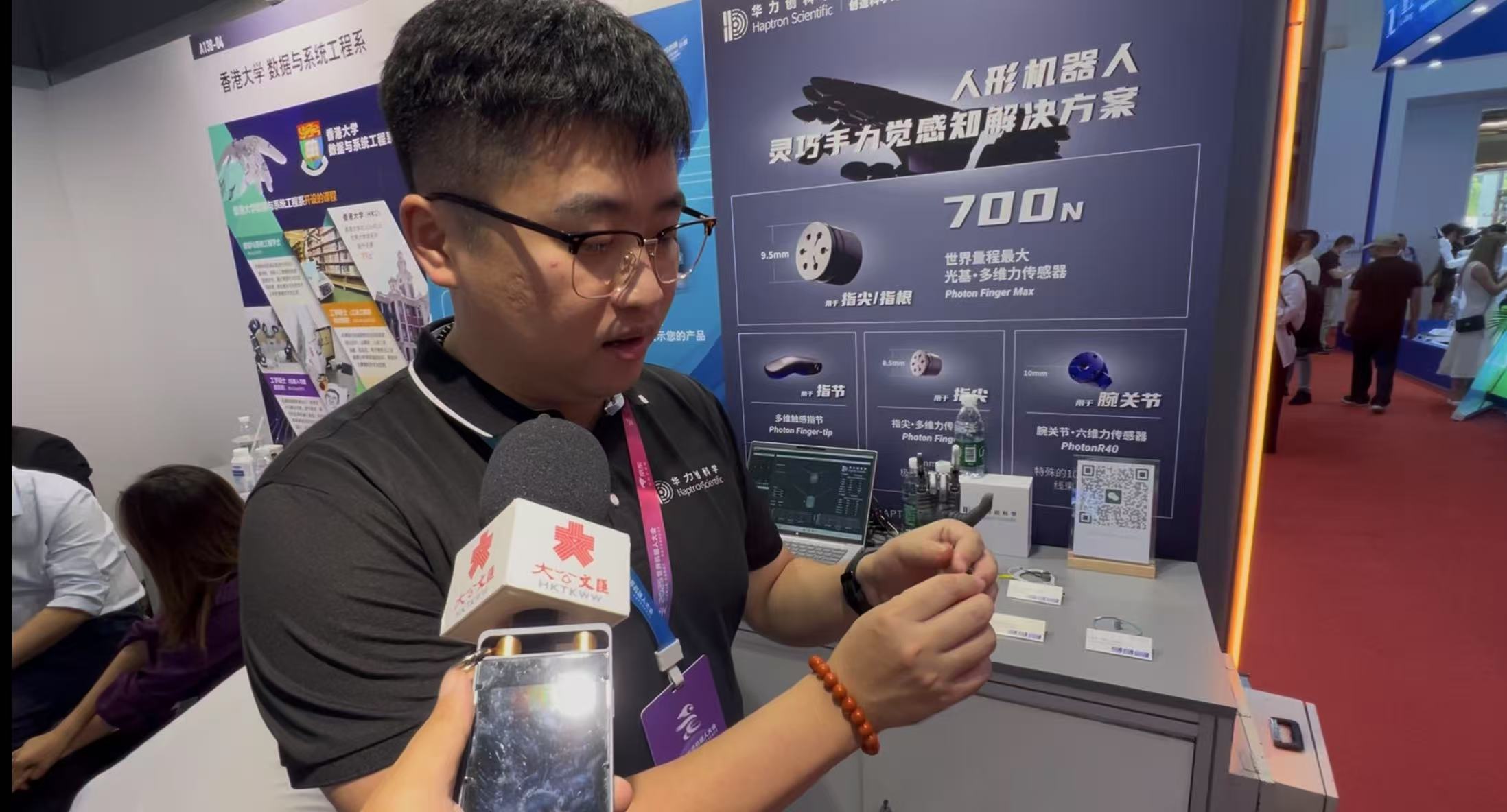 (大公文匯網 記者 郭瀚林)今年的世界機器人大會首次設置香港展團,多家來自香港企業和機構亮相。華力創科學有限公司CEO魚晨向記者介紹,智能傳感器是機器人感知世界的「觸角」,尤其是力傳感器,是機器人精準感知、靈活操作的核心要素。「我們採用了全球首創的高性能光學多模態感知技術,將六維力傳感器的尺寸首次壓縮到毫米級。裝備該傳感器後,人形機器人的手指尖就能擁有像人一樣的感知能力。」