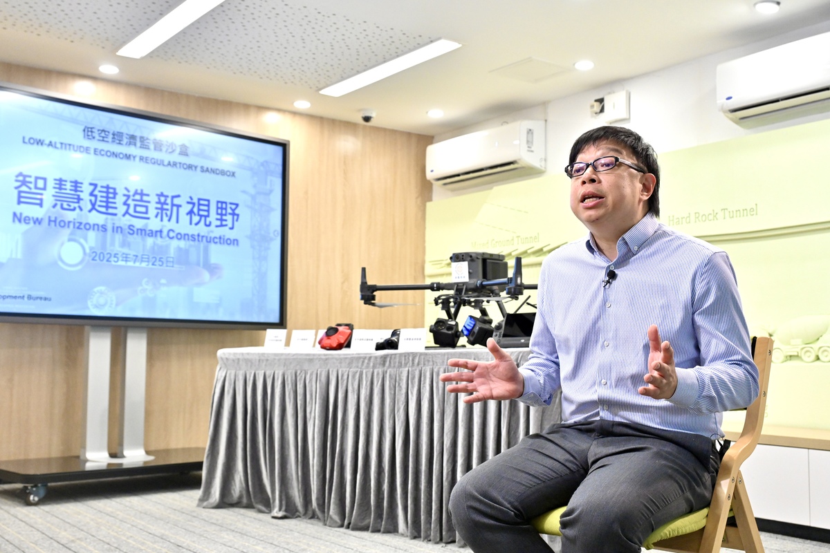 他指出,發展局自行研發的智慧工地管理系統「智眼SmartEye」會詳細分析無人機採集的數據,比較不同日期、不同時段的影像,量度挖掘出來的泥土和岩石體積、斜坡傾斜度和構築物垂直度等,有效監察工程質量和工地安全。