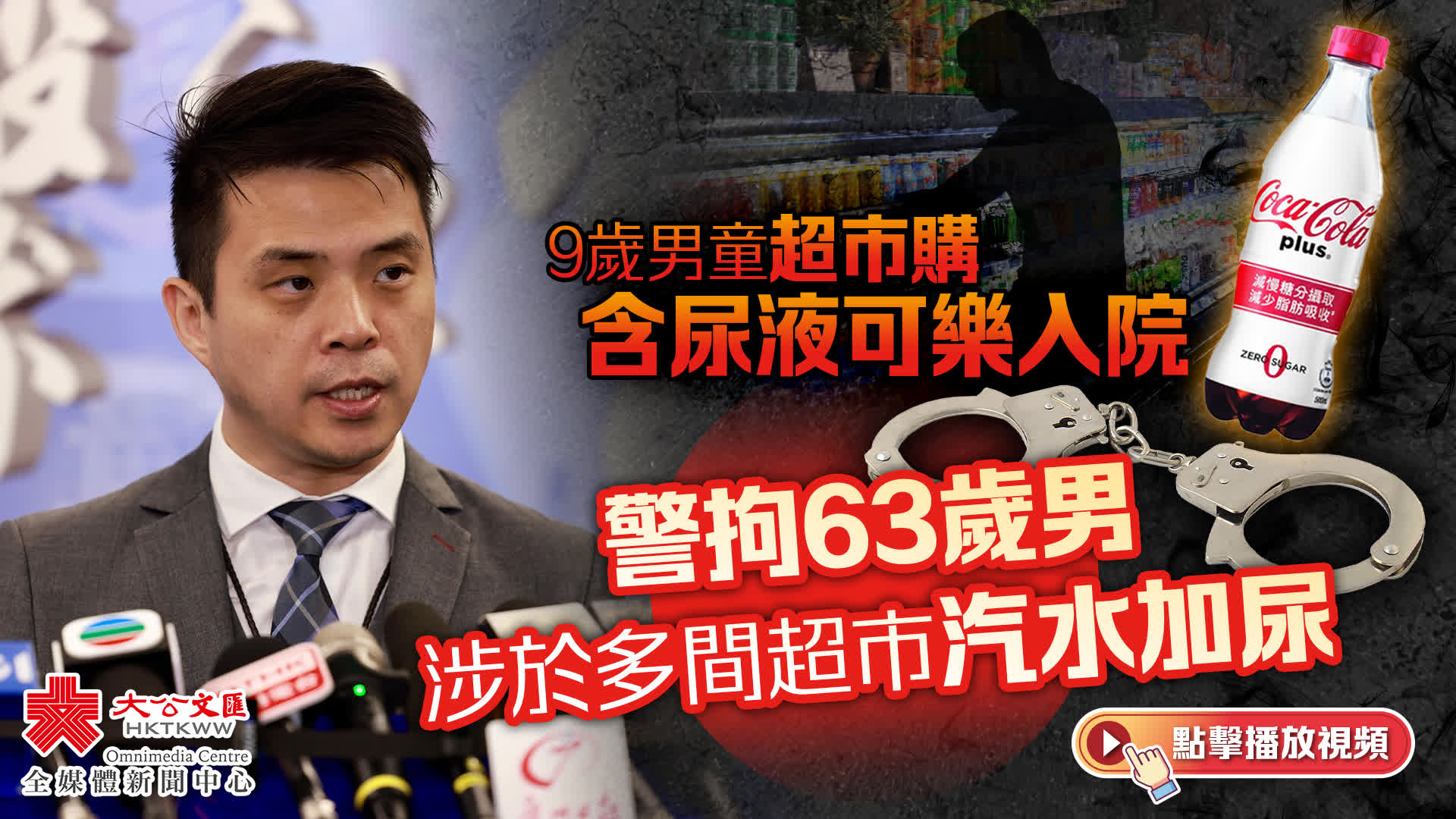 大公文匯全媒體報道,今年7月底,警方接獲舉報,指過去一年內在深水埗、旺角及灣仔區多間超市,發現有可口可樂及七喜膠瓶裝飲品懷疑被混入尿液。警方經過調查,於8月9日拘捕一名63歲本地男子,報稱無業。據了解,警方在疑犯住所,除了檢獲其犯案時穿着的衣物外,亦在其寓所發現1支準備好的尿液,以及數支同一批次、尚未開蓋的汽水,相信有人準備再犯案。