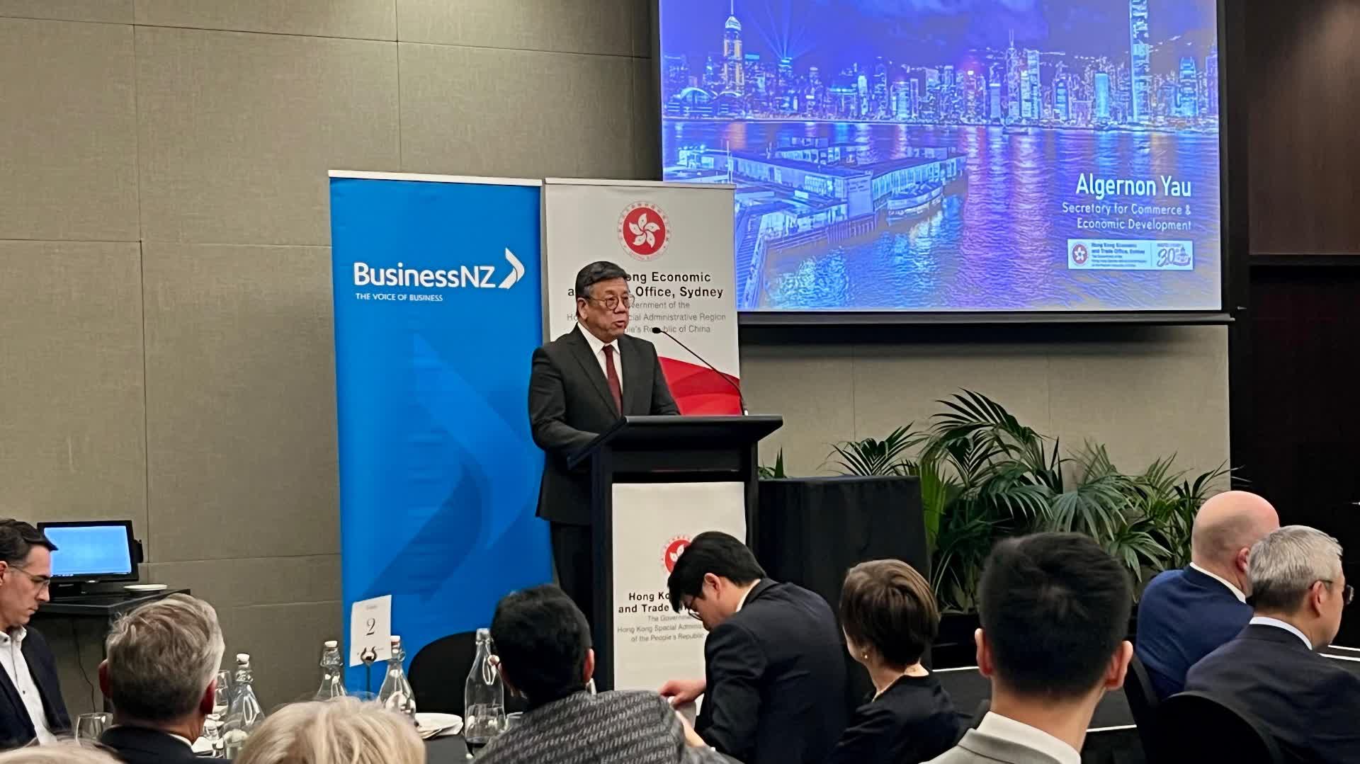提到區域合作,丘應樺指出,香港已準備好加入作為全球最大自由貿易協定的《區域全面經濟伙伴關係協定》(《協定》)。《協定》的15個成員經濟體均為香港主要貿易夥伴,合共佔香港貿易總額七成。他呼籲新西蘭支持香港盡早加入《協定》,並指香港銳意透過加入《協定》,為區域經濟發展和融合作出重要貢獻。