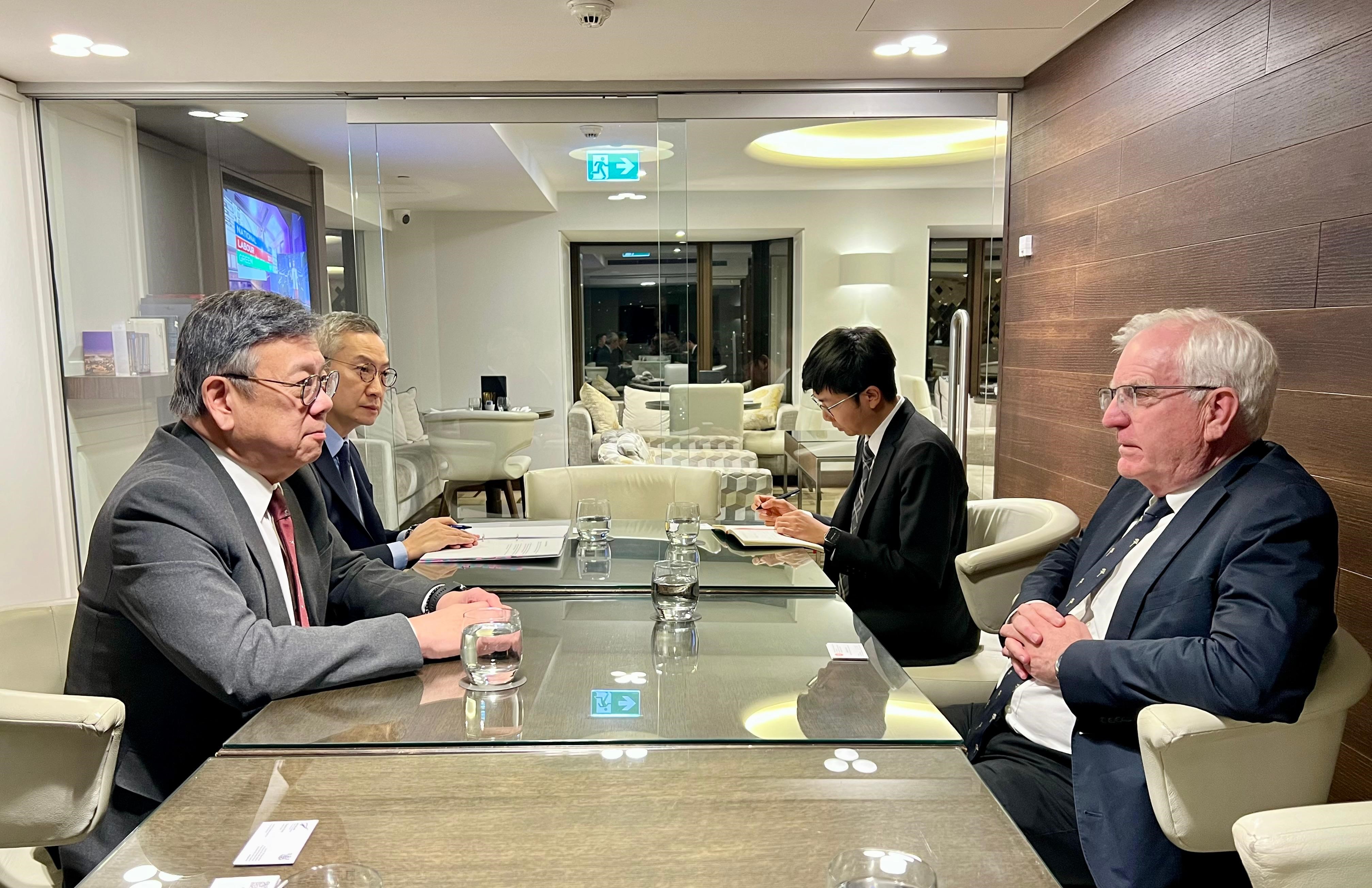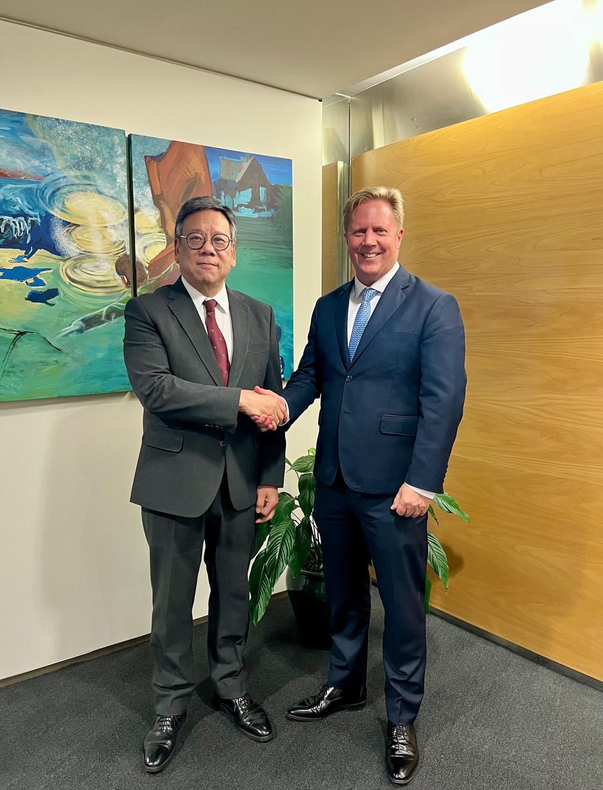 此外,丘應樺禮節性拜會中國駐新西蘭(庫克群島、紐埃)大使王小龍,介紹香港的最新發展和深化國際交往合作的工作,以應對環球經貿格局的轉變。