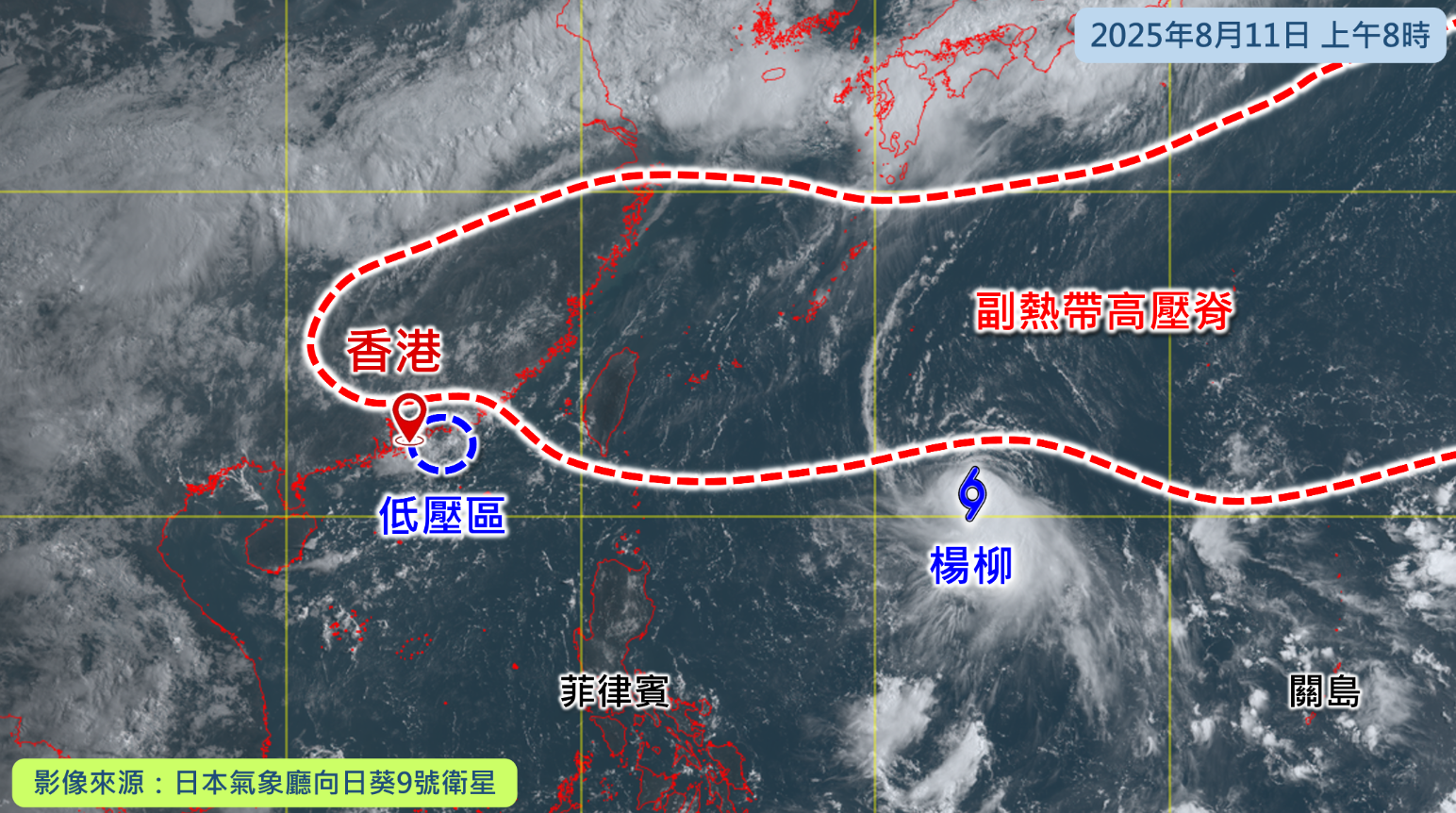 此外,雖然「楊柳」登陸後橫過內陸地區會逐漸減弱,但與其相關的大驟雨及狂風雷暴會影響廣東。若楊柳在內陸地區採取較為偏南的路徑,其為珠江口帶來的雨量亦會較多。