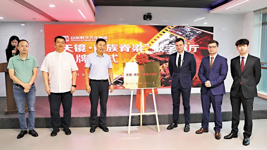 (香港文匯報記者 丁春麗、實習記者 師穎欣 濟南報道)8月11日,法國友人馬庫斯·德雷特斯與好友士傑、鍾灝松來到山東數字文化集團舉辦的「天鏡·民族脊樑」數字展廳揭牌儀式。他們已向該集團無償提供約30張電子版歷史照片,用於展廳展示,並借助數字技術賦予這些歷史影像新的生命。