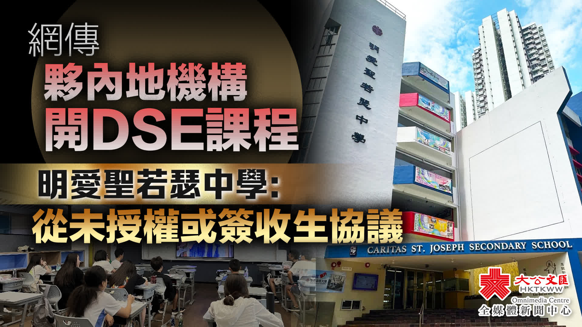 網上早前流傳,「新東方」在社交平台發布帖文,聲稱與本港資助學校明愛聖若瑟中學合作,讓內地的港籍學生來港修讀中學文憑試(DSE)課程,並提供全宿計劃等。
