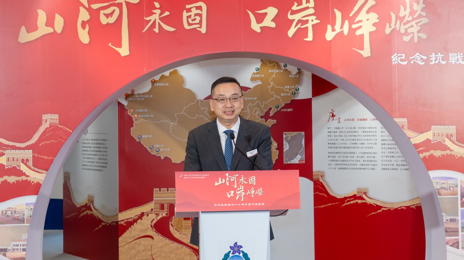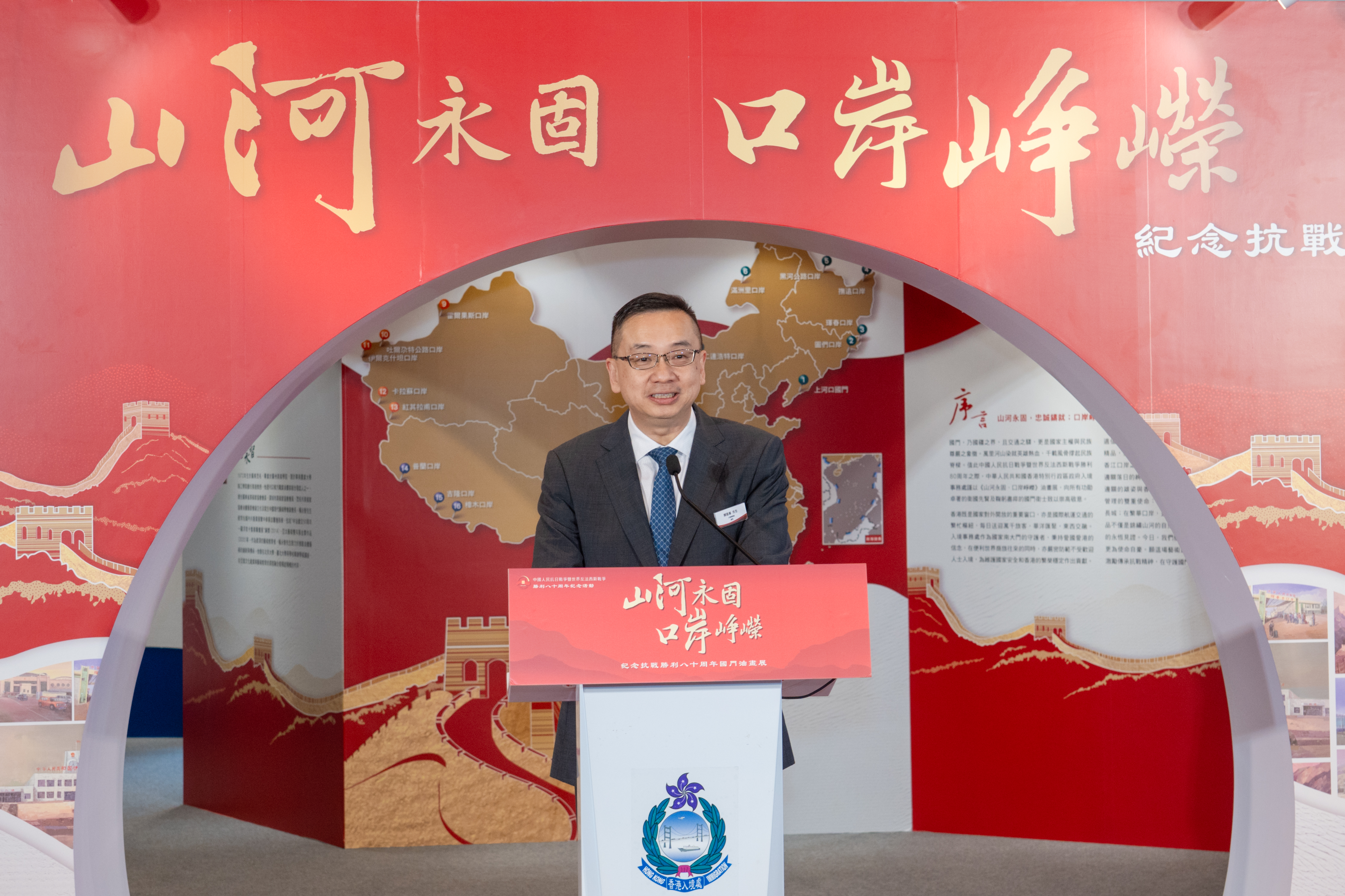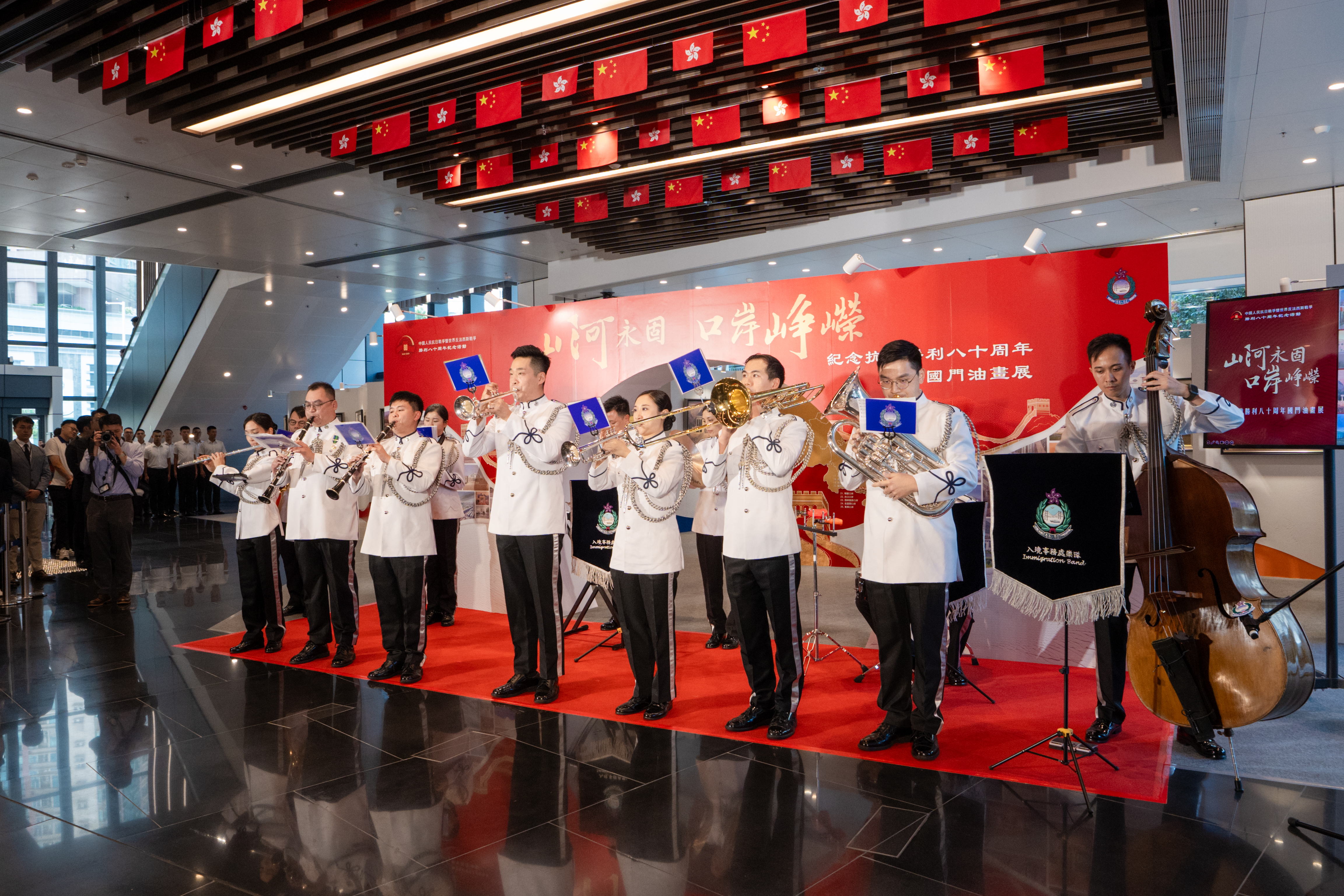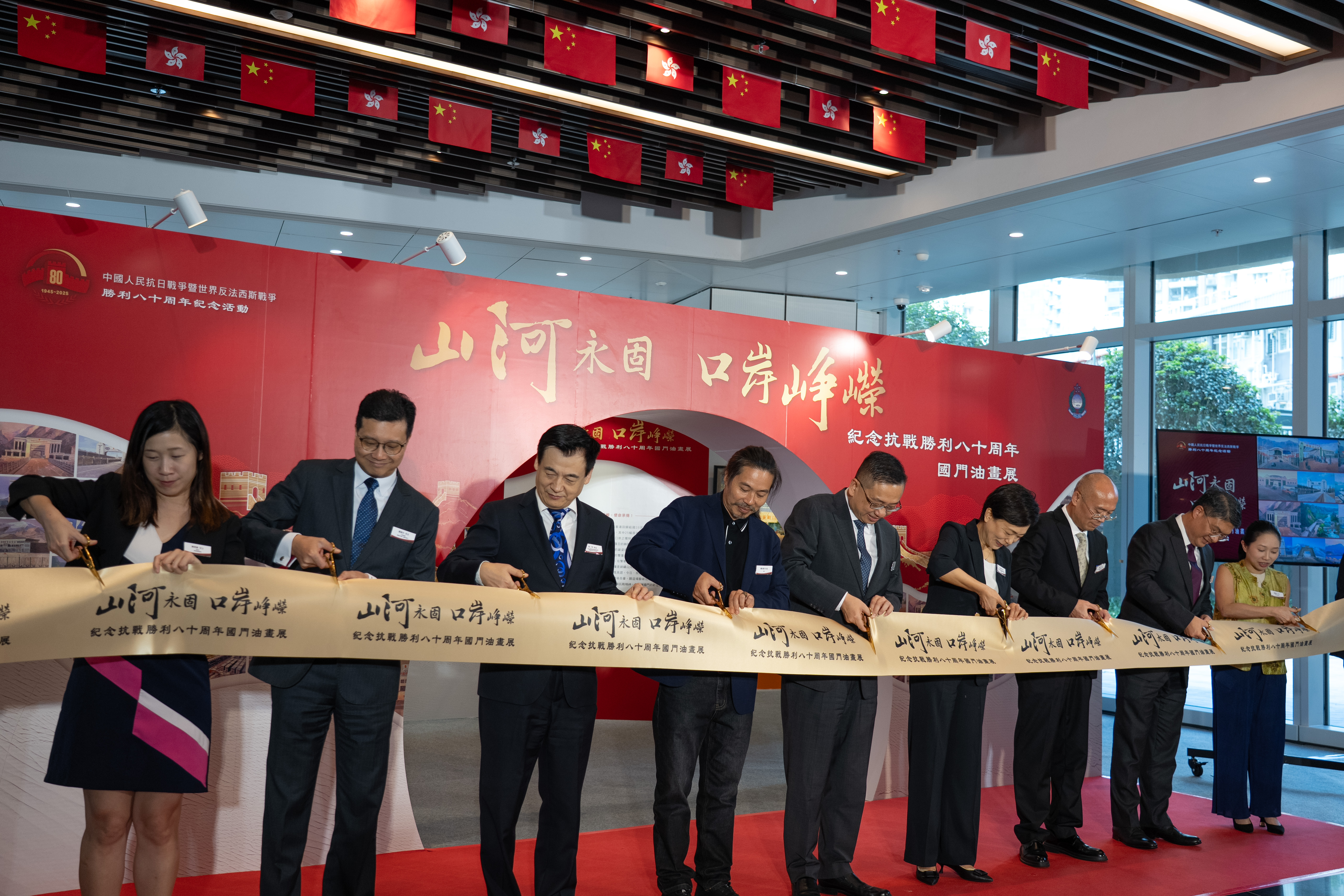 處長郭俊峯聯同中聯辦、國安公署、外交部駐港特派員公署、保安局、西貢民政事務處等機構的代表,今日共同爲展覽剪綵,致敬抗戰英雄和邊防勇士。處長希望大家欣賞完畫展後,傳承不屈不撓的精神和家國情懷,珍惜今日得來不易的和平和發展。