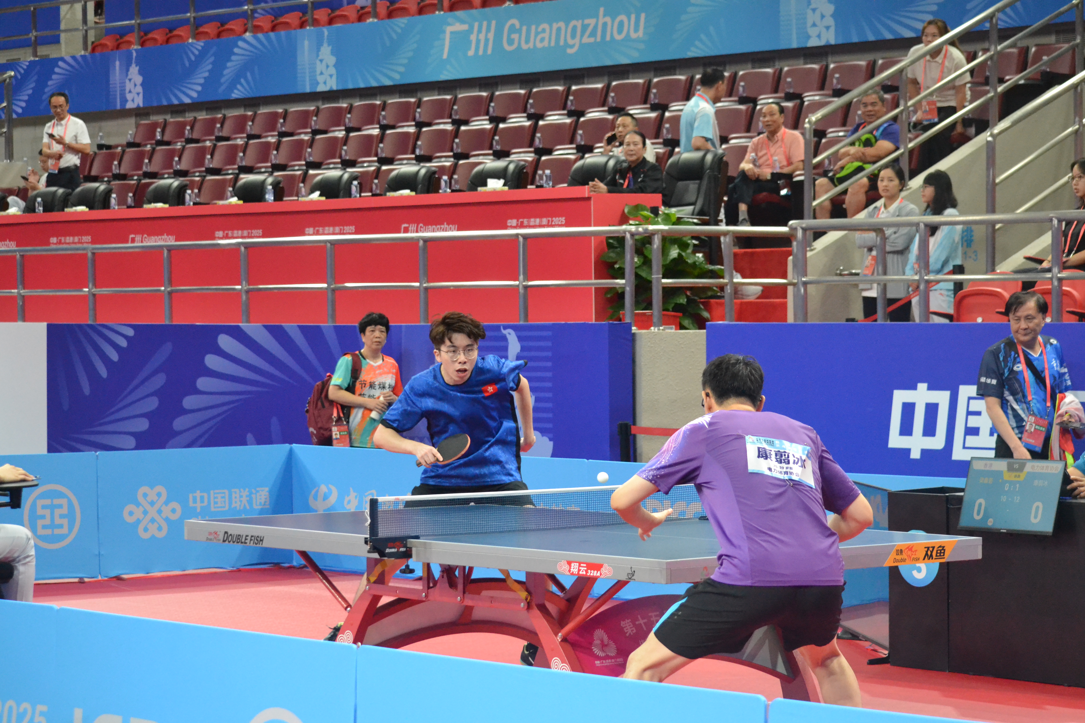 在40歲-49歲組別,港隊男子單打選手蔡鎮滔與江蘇隊選手戴清展開激烈爭奪,比賽異常艱苦,特別是第二局,打到第14分才決出勝負。最終,蔡鎮滔以12:10、14:12兩連勝,贏得開門紅。