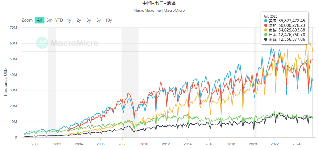 美國對華焦慮,包括近期中國在博弈中展現出的反制與體系韌性。從能源、稀土、礦產等各項資源,到軍事及高精尖技術領域,中國的資源之豐富、發展之迅猛似乎讓美國措手不及。此外,中國貿易結構的轉型削弱了美國槓桿效力,中國對美貿易依存度明顯下降,東盟取代美國成為最大貿易夥伴。當特朗普揮舞關稅大棒時,中國正以「一帶一路」和區域合作構建去美國化的貿易縱深。