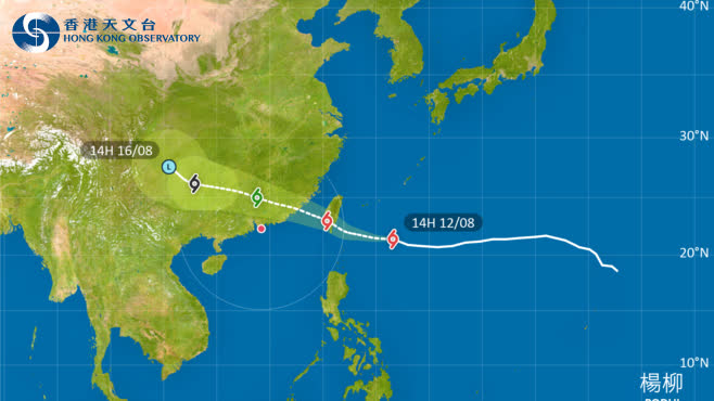 大公文匯全媒體報道,強烈熱帶風暴「楊柳」已增強為颱風。華航宣布,受颱風「楊柳」影響,明日(13日)往返本港與高雄及台北的8班航班將取消,分別是CI 936、CI 935、CI 916、CI 915、CI 920、CI 919、及CI 924及CI 923。