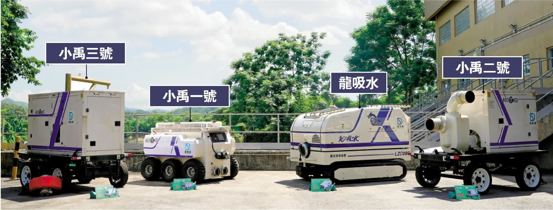 「『龍吸水』只需要每八小時加一次油,即可長時間持續工作。『龍吸水』操作靈活,其履帶式的設計,能應付多種複雜地形與環境。」陳卓宗稱,「小禹一號」亦採用無線遙控方式操作,有內置的驅動裝置,且能水陸兩用,最高排水量為每小時700立方米。「小禹二號」和「小禹三號」的最高排水量則為每小時500立方米。