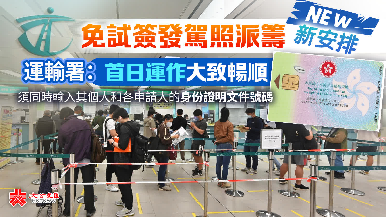 運輸署發言人說,新安排今日運作大致暢順。為確保有需要的市民公平有序地使用服務,將進一步優化免試簽發申請程序和便利市民,擴容增量、多管齊下推出新措施,推動牌證服務電子化。