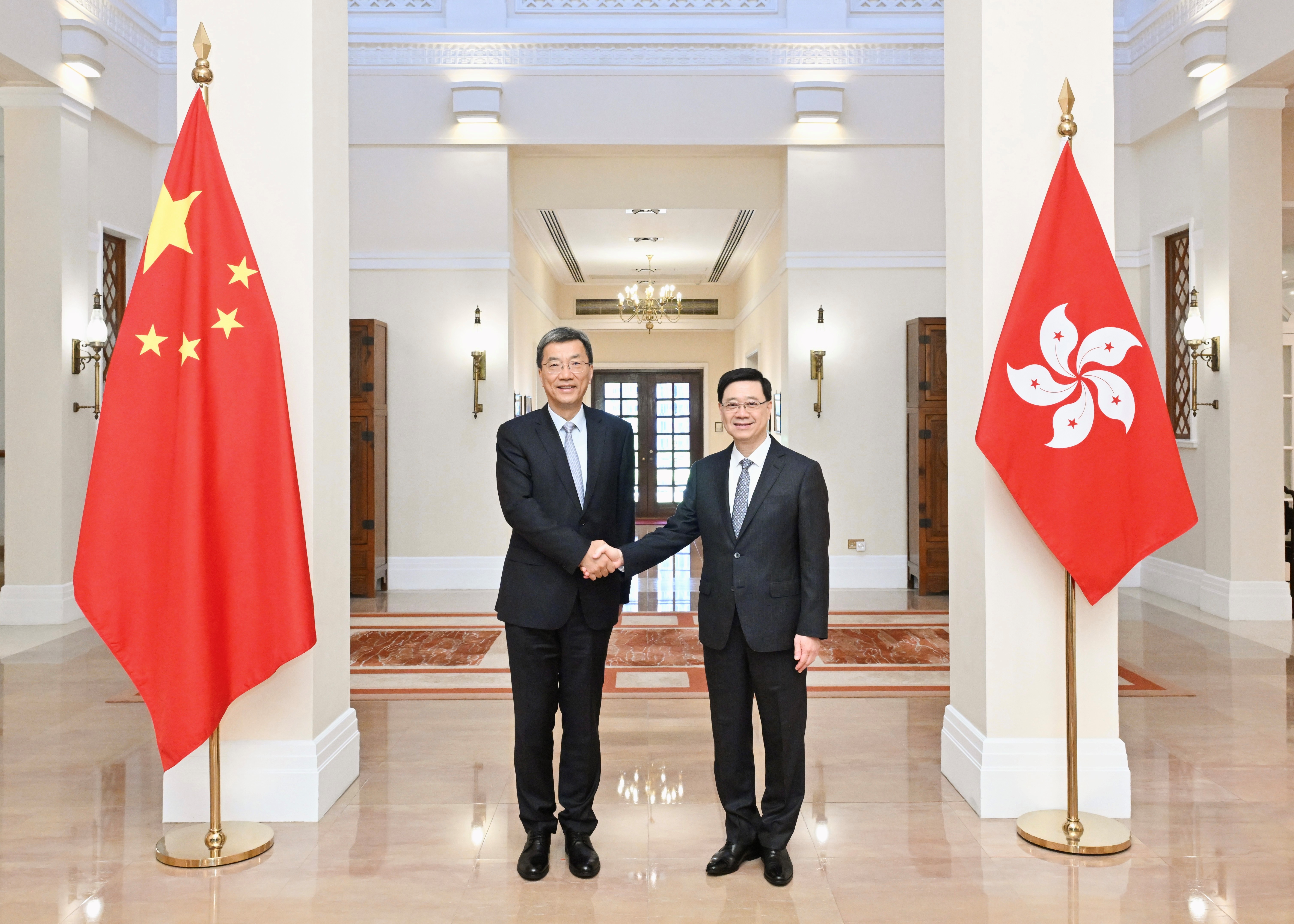 大公文匯全媒體報道,行政長官李家超今日(13日)在禮賓府與教育部部長懷進鵬會面,就深化內地與香港的教育和科研合作交流意見。教育局局長蔡若蓮、創新科技及工業局局長孫東和行政長官辦公室主任葉文娟亦有出席。