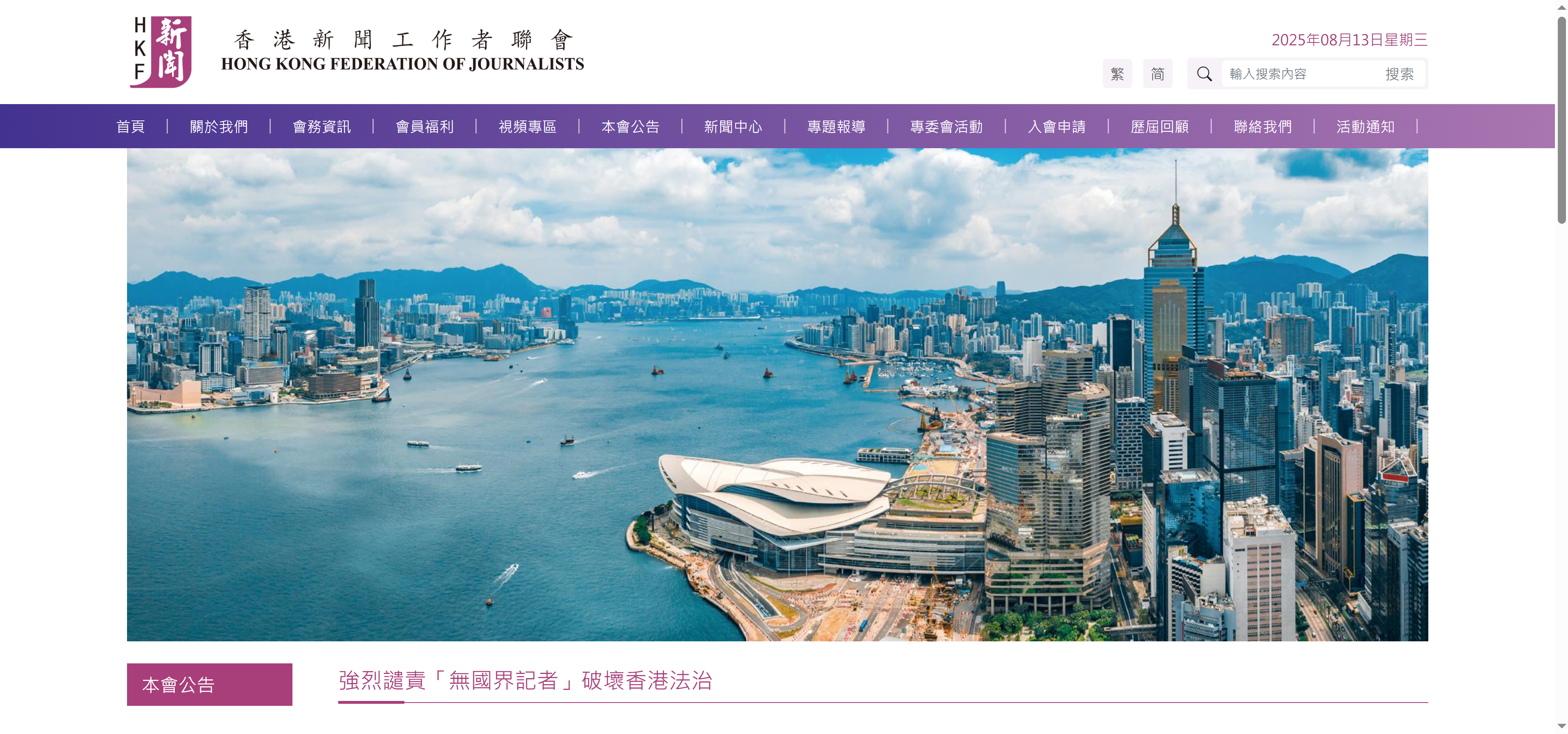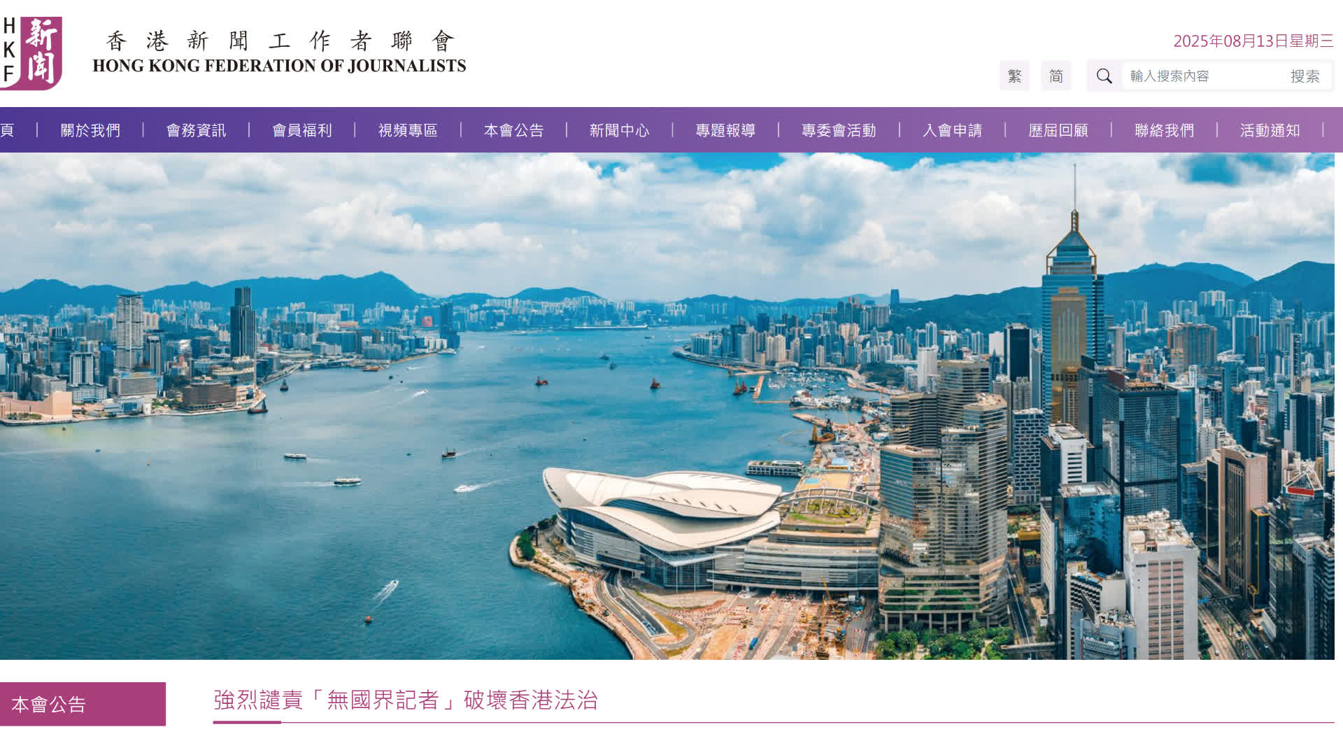 大公文匯全媒體報道,香港新聞工作者聯會今日(13日)表示,注意到在黎智英涉及違反香港國安法一案結案陳詞前夕,「無國界記者」組織發表所謂的聲明,捏造事實,公然抹黑恐嚇特區司法機關,意圖替違法分子開脫。這是對法治的踐踏,也是對特區內部事務的粗暴干預,香港新聞工作者聯會對此表示堅決反對並予以強烈譴責。