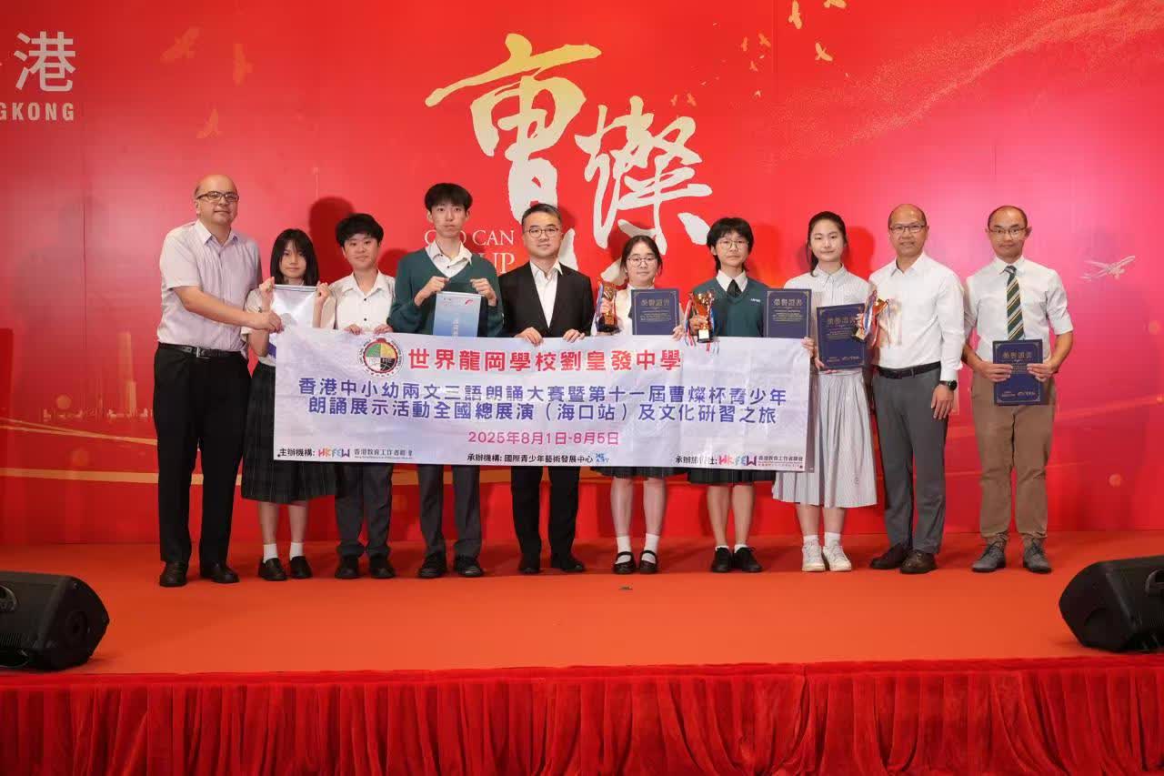 由香港教育工作者聯會主辦的首屆香港中小幼「兩文三語」朗誦大賽暨第十一屆「曹燦杯」青少年朗誦展示活動(香港)頒獎典禮, 8月13日於亞洲國際博覽館隆重舉行。活動吸引全港1000餘人次參與,獲100餘所學校及培訓機構支持,歷經三個月初賽與決賽遴選,最終逾60位獲獎學子與教育界、文化界嘉賓齊聚見證盛典。活動旨在推廣中英文及普通話的學習應用,提升青少年語言表達及文化素養。