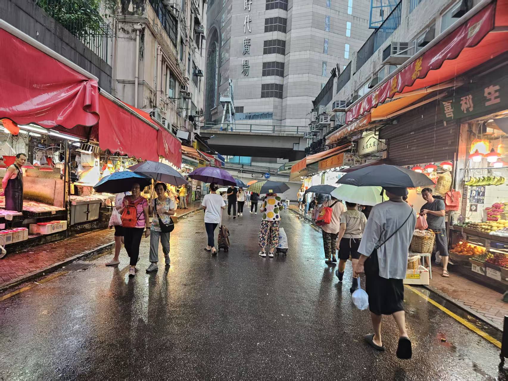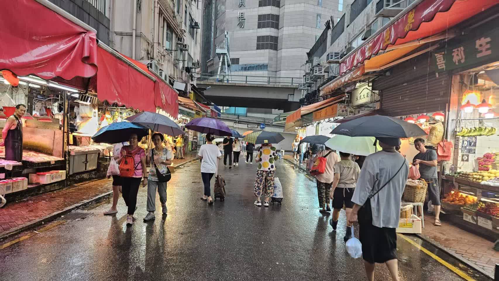暴雨下,市民到街市買餸。(大公文匯全媒體記者裘真攝)