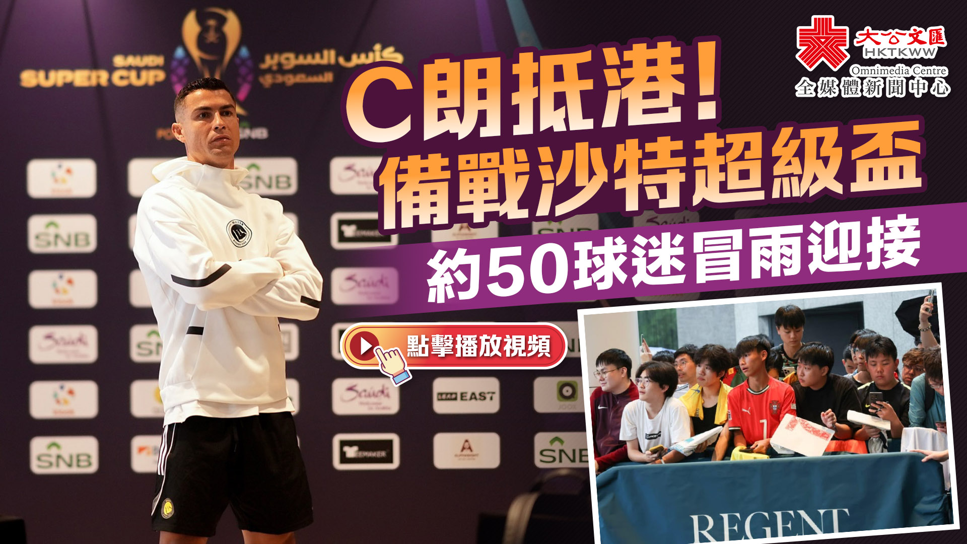 有消息指,C朗將在8月20號到訪位於K11 Musea的CR7 LIFE博物館,亦會與本地學生交流,至於艾納斯在沙特盃四強的對手伊蒂哈德則會在明日到港。