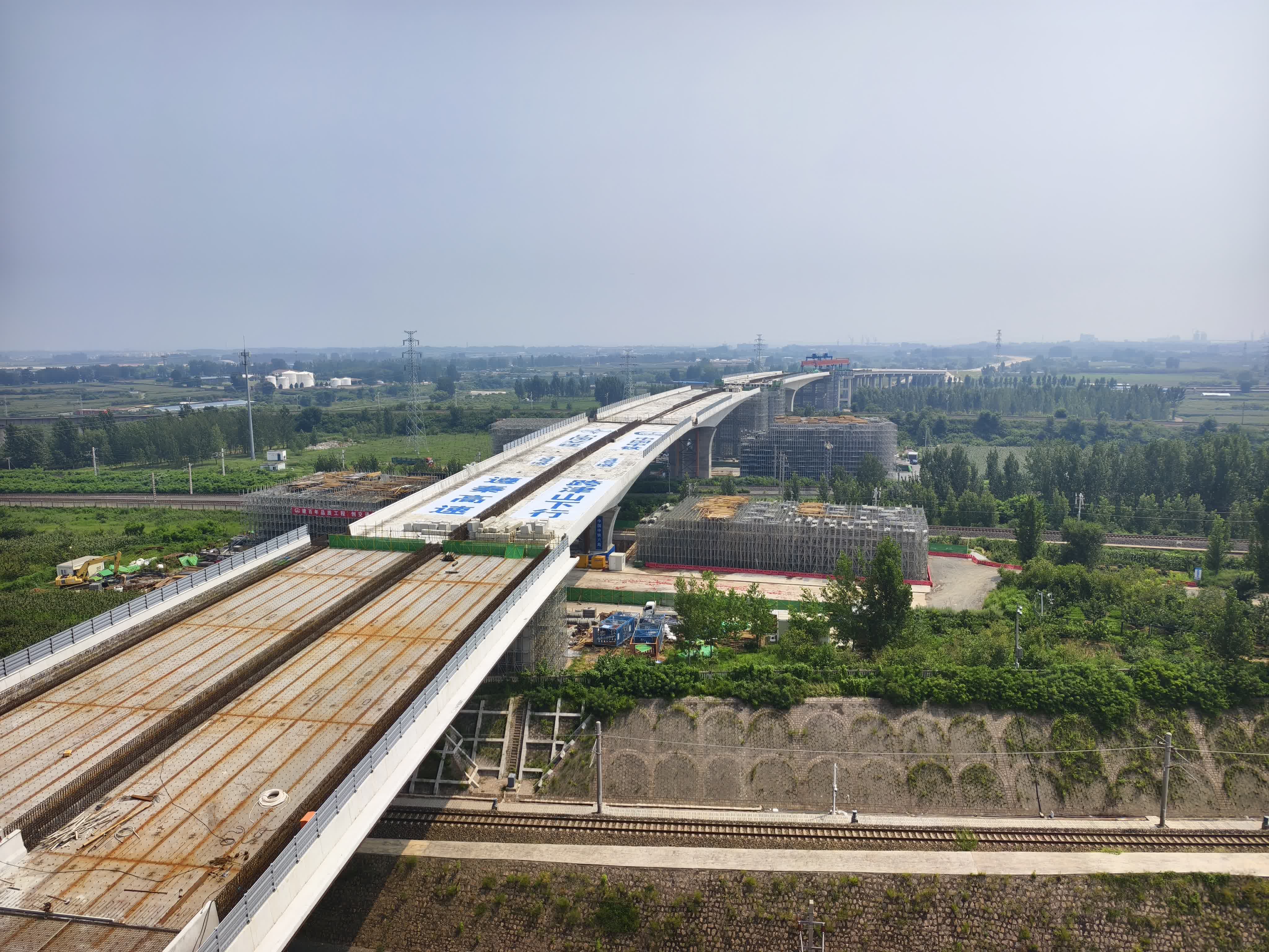 同時,為提升工程品質並踐行綠色理念,項目部在橋樑建設中採用「高性能低合金免塗裝耐候鋼」。這種材料在大氣環境中能自然形成致密、穩定的非晶態鏽層,如同天然保護屏障,有效隔絕腐蝕介質,其耐候性能是普通碳鋼的2至8倍,大幅延緩鋼材腐蝕,這不僅延長了橋樑壽命,更關鍵的是徹底消除了傳統塗裝體系後期脫落維修對京哈鐵路運營帶來的潛在干擾。