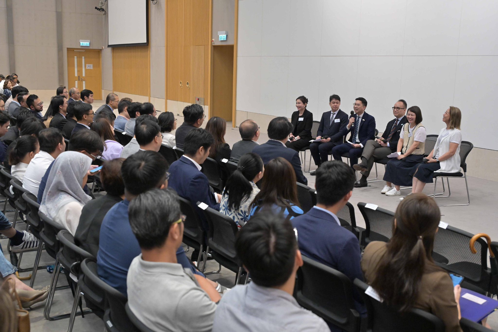 交流會邀請發展局副局長林智文分享供水系統存在的挑戰及政策方針,以及由水務署署長黃恩諾介紹更換供水喉管的短、中期計劃,以及緊急食水事故的應變和通報機制。在經驗分享環節,就由黃大仙區及屯門區的民政事務專員、區議員和關愛隊代表分享最近處理供水事故遇到的問題和處理心得。