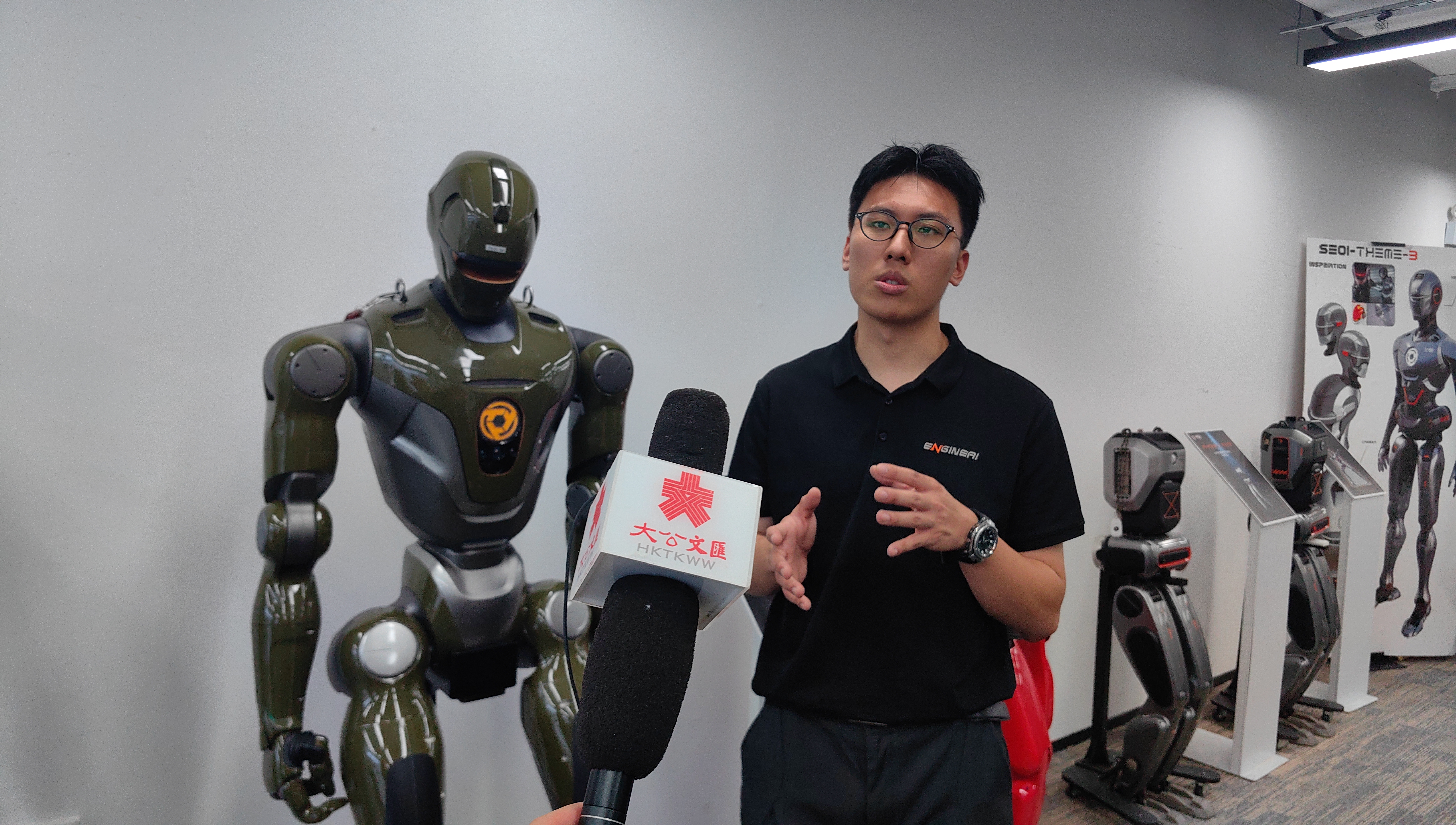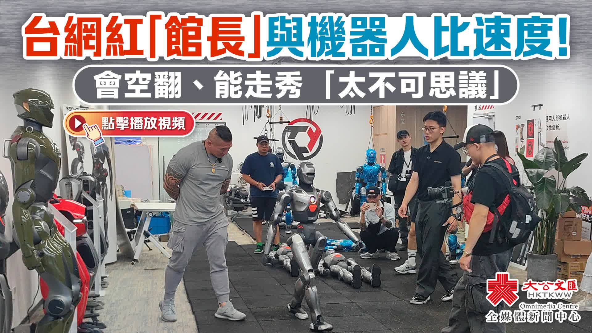 (大公文匯網 記者 郭若溪)8月14日,台灣網紅「館長」陳之漢深圳行進入第二日,他來到南山「機器人谷」,與全球首個會前空翻的人形機器人眾擎PM01展開了一場趣味互動。