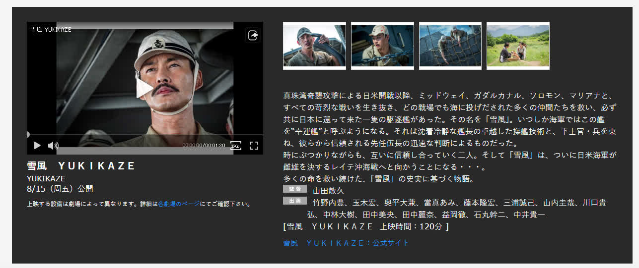 筆者今年6月在TOHO日本橋影院觀看《F1》,未想到的是,開場之前播放了接近20分鐘各種「終戰80周年紀念」電影預告片,大部分都在今年7/8/9月上映,其中一部《雪風》更是特地安排在8月15日上映。