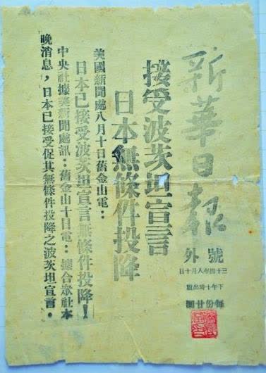 8月15日,日本天皇裕仁以廣播停戰詔書形式
