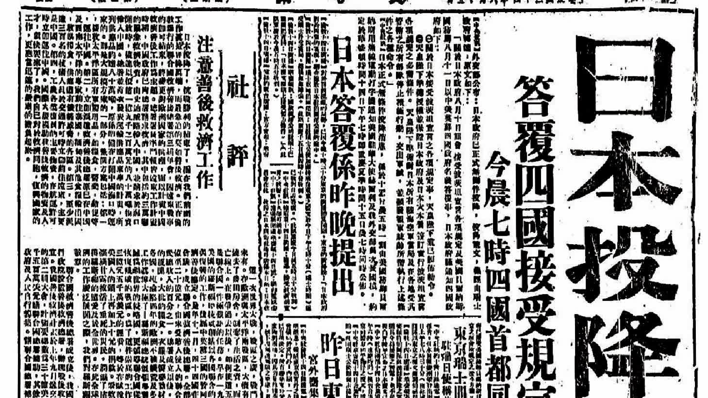 80年前的今天,《大公報》頭版以五個鉛字「日本投降矣!」向全國報道了抗戰勝利消息。這五個字,力透紙背,道出了全國軍民浴血抗戰迎來勝利的無比自豪,也浸透了無數同胞輾轉棘途對未來的美好憧憬。撫今追昔,中國人民從來沒有像今天這樣當家作主,屹立於世界民族之林。我們真是歡欣,真是感激,在笑顏上流下淚來!