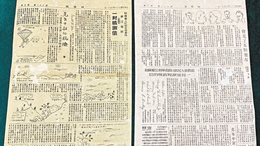 (香港文匯報 記者 黃寶儀 廣州報道)在粵港澳這片神奇的熱土上,曾發生過和浙江舟山漁民冒死營救「里斯本丸」號英國戰俘一樣驚心動魄的傳奇故事——東江縱隊港九大隊營救盟軍飛行員,堪稱粵港版《東極島》。在14日廣東省檔案館推薦的館藏抗戰檔案中,就包括《前進報》、《華商報》、《解放日報》刊載了東江縱隊港九大隊在香港地區營救飛行員克爾並直接促成東縱與美國開展情報合作的故事。