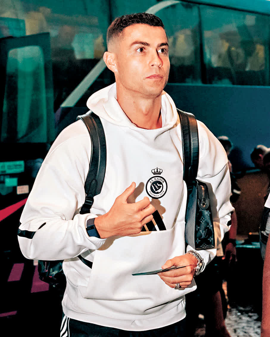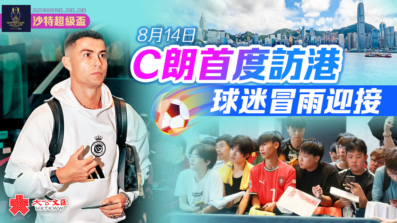 (大公報 記者 譚德龍)葡萄牙球星C朗拿度周四(14日)跟隨所效力的沙特阿拉伯球會艾納斯首度訪港,準備下周19日至23日在香港大球場出戰沙特超級盃準決賽對伊蒂哈德。飛抵香港後,大軍乘坐旅遊巴前往所入住的尖沙咀香港麗晶酒店,不少球迷冒雨在門外的球迷區等候,見C朗下車即興奮歡呼,而C朗進入酒店安頓並稍事休息後,又步出酒店登上旅遊巴隨軍參與在港行程,本港球迷未來一周又要忙於追星。