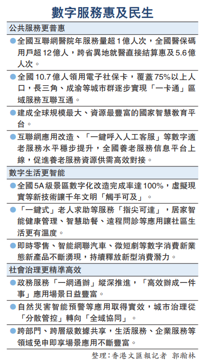 (香港文匯報記者 郭瀚林 北京報道)中國是第一個把數據作為生產要素的國家,政府部門多措並舉促進數據資源的開發利用。國新辦14日舉行的新聞發布會上,國家數據局相關負責人表示,「十四五」時期,中國數字基礎設施實現長足發展,截至今年6月底,中國算力總規模居全球第二。隨着數字領域突破一批關鍵核心技術,業界「缺芯少魂」現象正得到逐步解決。此外,中國人工智能綜合實力實現躍升,人工智能專利數量佔全球總量的60%;國內多數大模型訓練使用的中文數據佔比已超六成,推動了人工智能模型性能的快速提升。