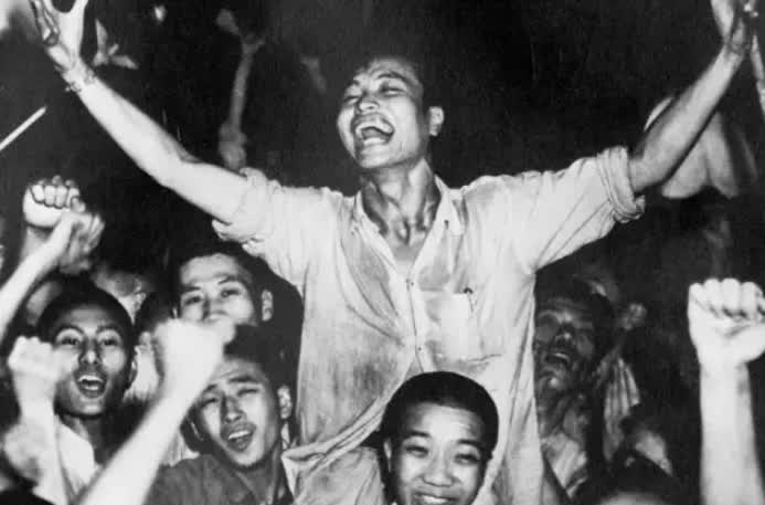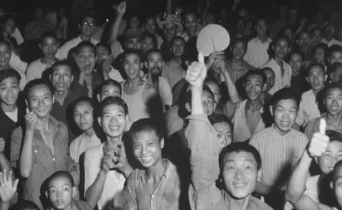 1945年8月15日的延安,軍民通宵慶祝日本投降。