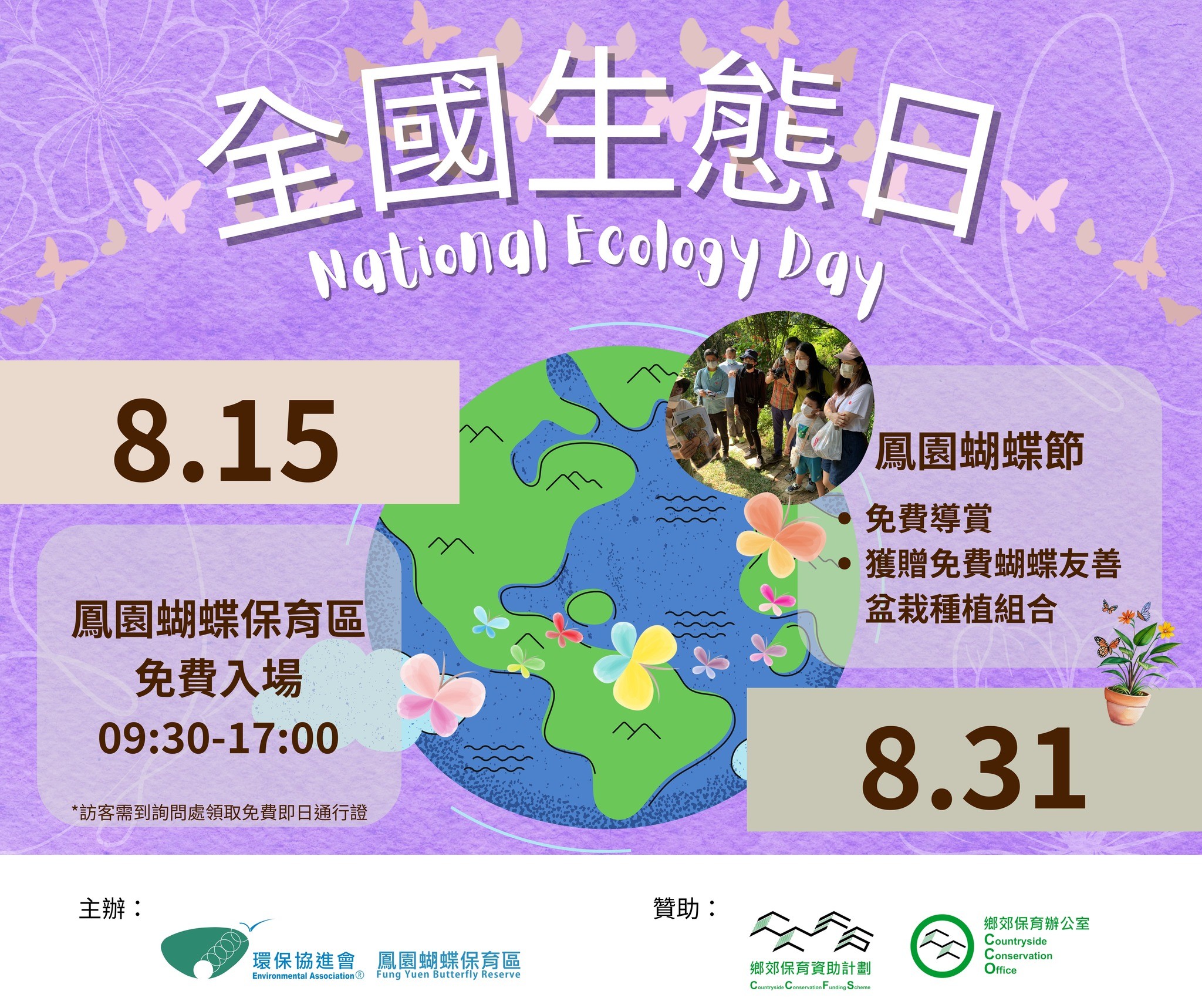 環境及生態局轄下的鄉郊保育辦公室亦會於9月9日至17日期間,在荃灣荃新天地二期中庭進行為期9日的全國生態日專題展覽,透過不同展品及互動遊戲,提高公眾對香港自然保育及環境保護的認識及關注。