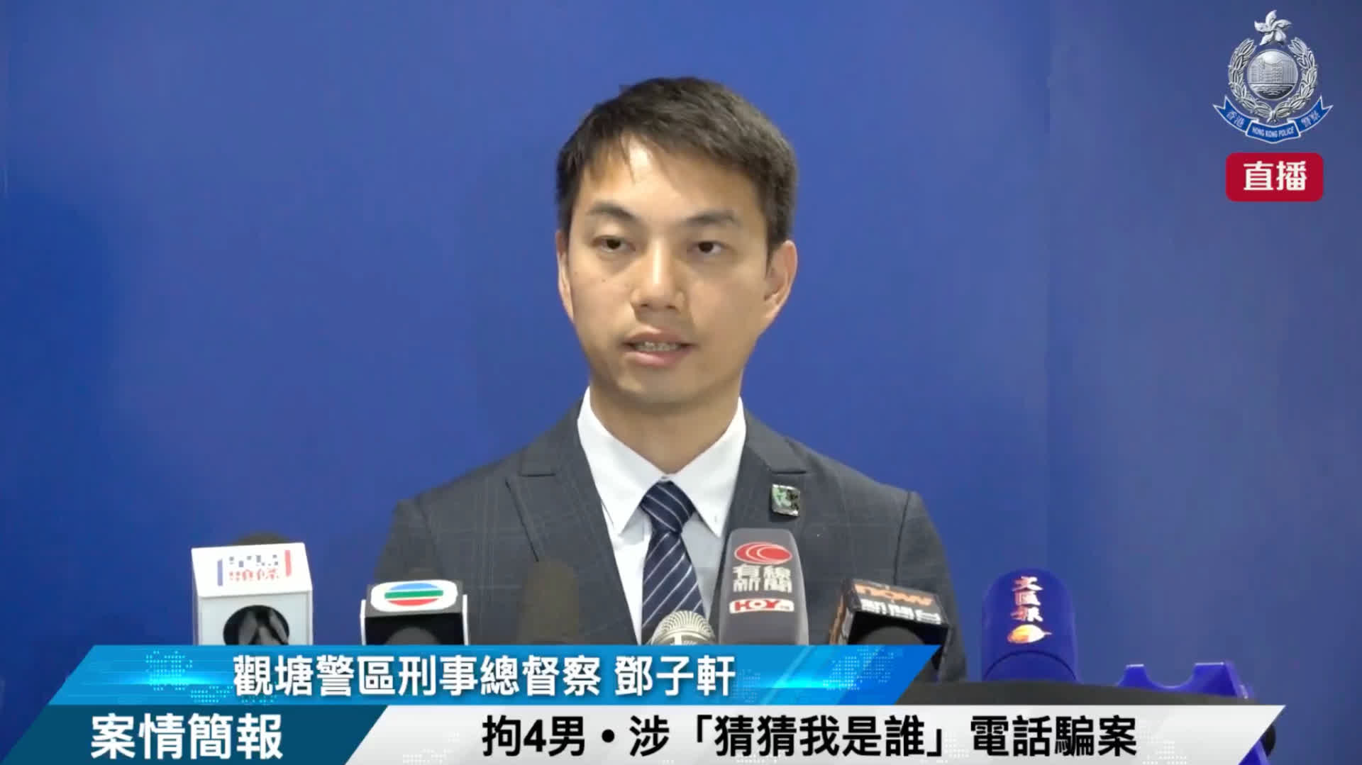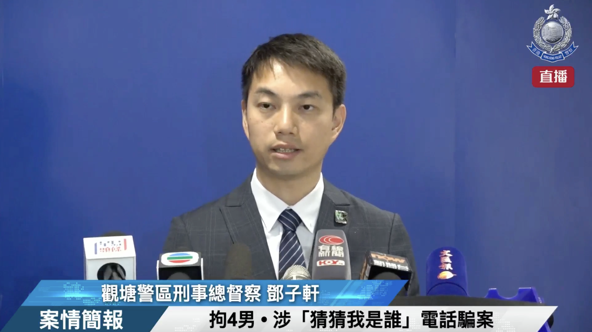 警方觀塘警區刑事總督察鄧子軒表示,警方於周二接獲一名71歲事主報案,指收到騙徒來電,對方假扮成其兒子,稱因涉刑事罪被捕,要求事主繳納保釋金,事主分兩次將110萬元港幣現金交予騙徒。案件中,年紀最大的受害人90歲,他們共計損失約260萬元港幣。