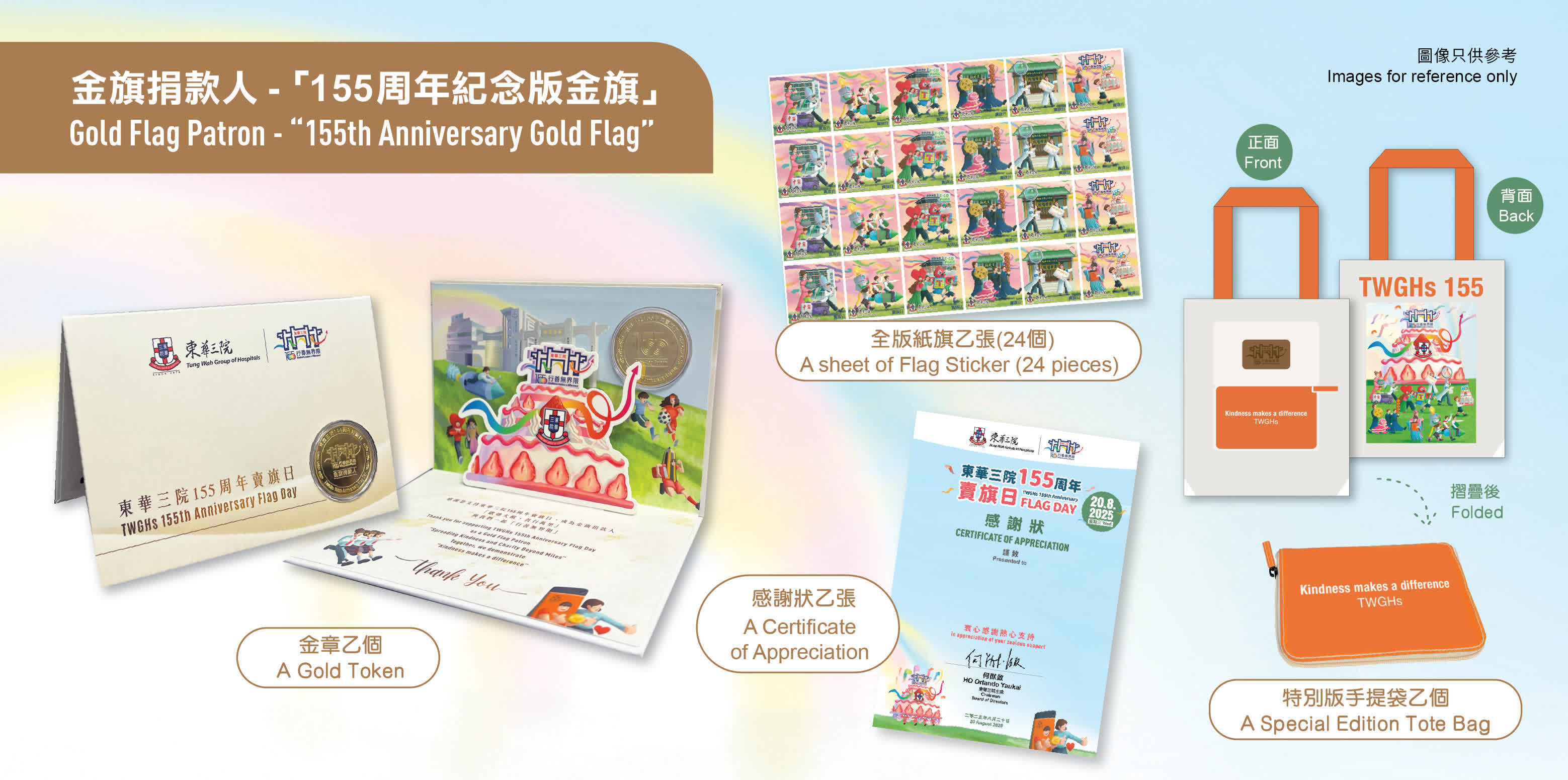 8月20日為該院一年一度的全港籌募活動「東華三院賣旗日」,為呼應155周年主題「行善無界限」,特別邀請本地藝術家Thomas Napoleon設計一套6款的紙旗,以清新水彩風格生動呈現該院在醫療、教育、社會服務、籌募活動、歷史文化保育及公共服務。設計更以155周年綵帶圖案串連,象徵東華三院團隊在慈善路上同心協力,屢創可能。