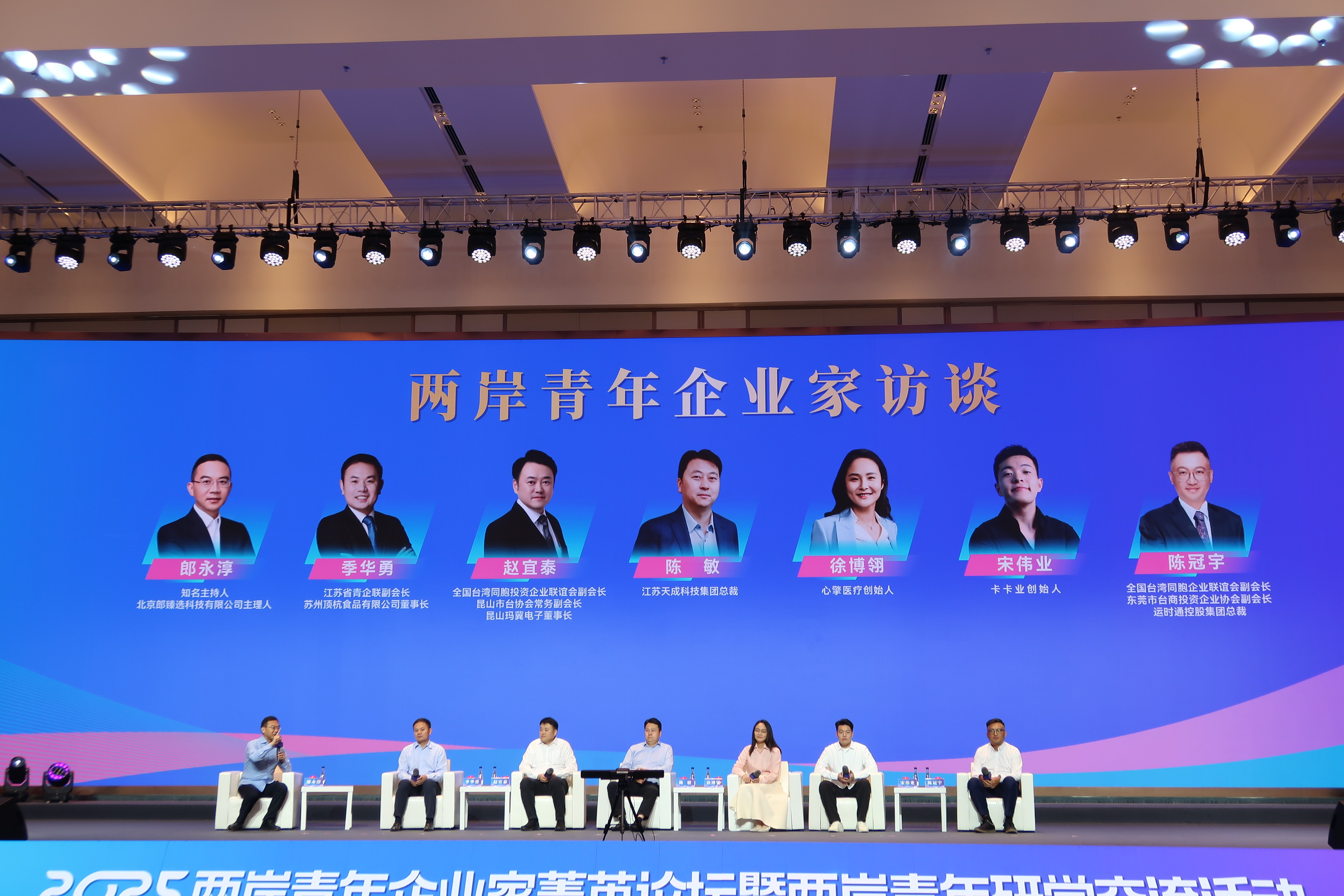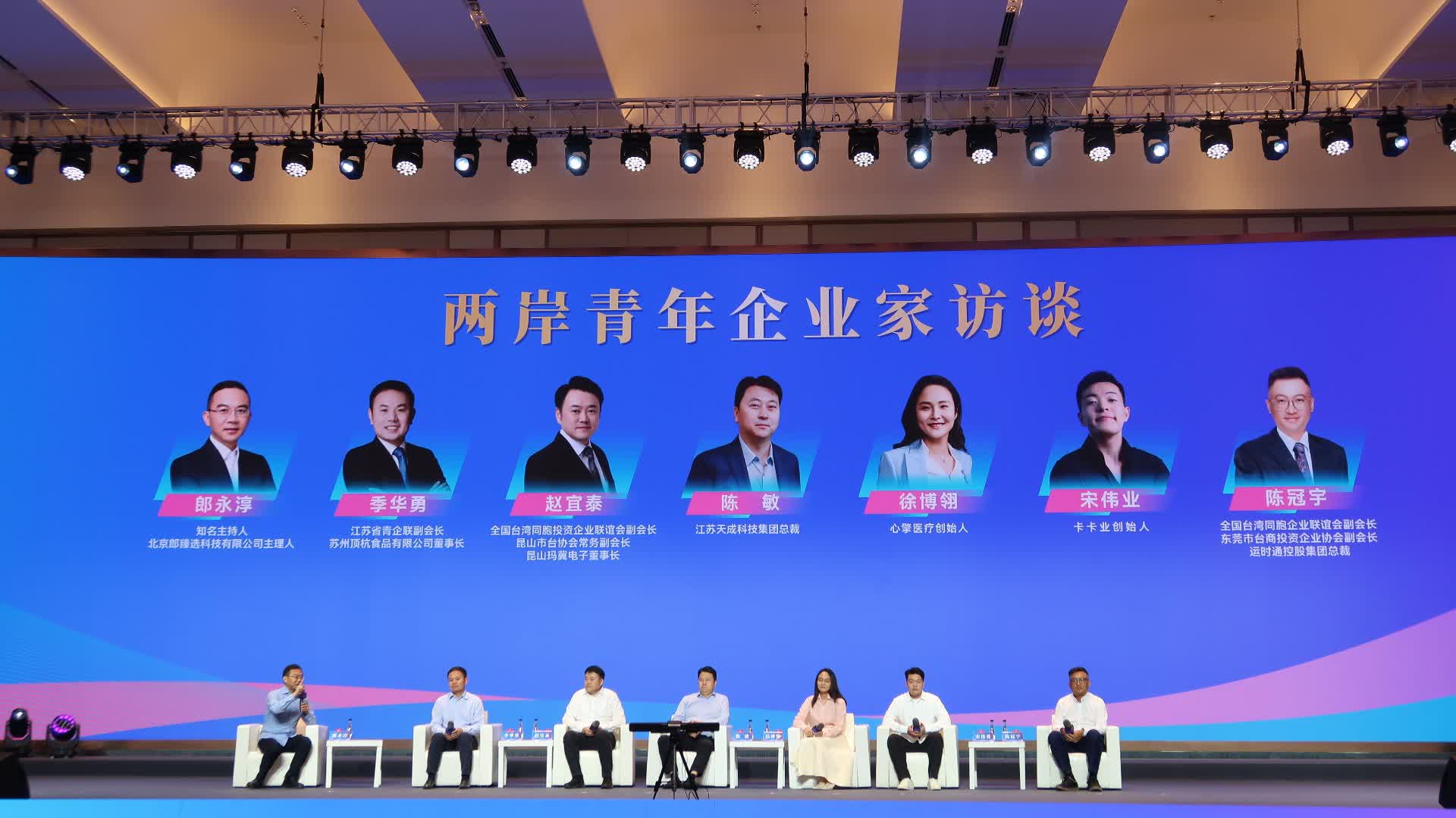 江蘇省青企聯副會長、蘇州頂杭食品有限公司董事長季華勇先生,全國台企聯副會長、昆山瑪冀電子董事長趙宜泰先生,江蘇天成科技集團總裁陳敏先生,心擎醫療創始人徐博翎女士,卡卡業創始人宋偉業先生,全國台企聯副會長、運時通控股集團總裁陳冠宇先生,在兩岸企業家訪談中分享了各自的創業經歷與感悟。