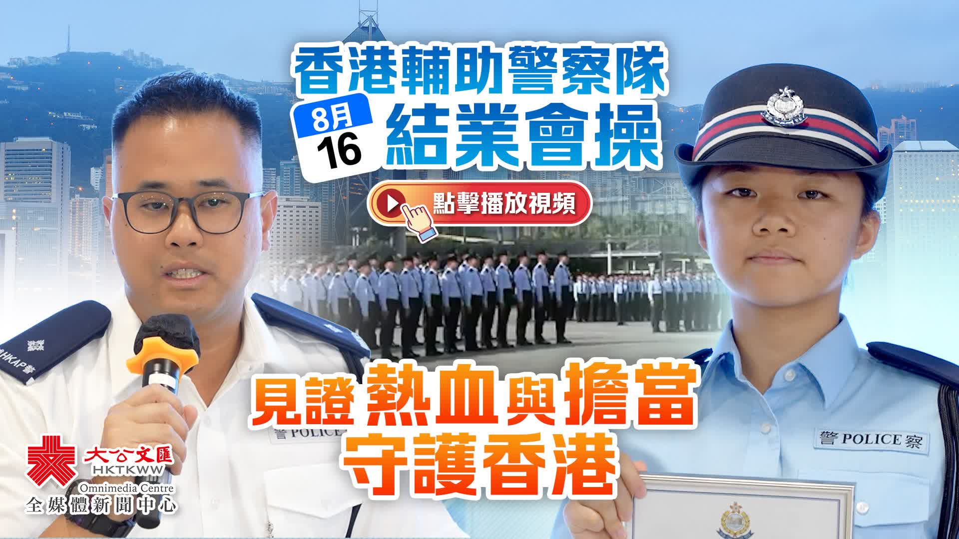 (大公文匯全媒體 記者 劉妍伶)香港輔助警察隊今日(16日)舉行結業會操,一批學員順利完成訓練課程,即將投入輔警行列,林柏岐與陸曼婷代表新一批輔警學員,分享自己投考輔助警察隊的心得體會,呼籲更多有志者加入輔助警察隊。