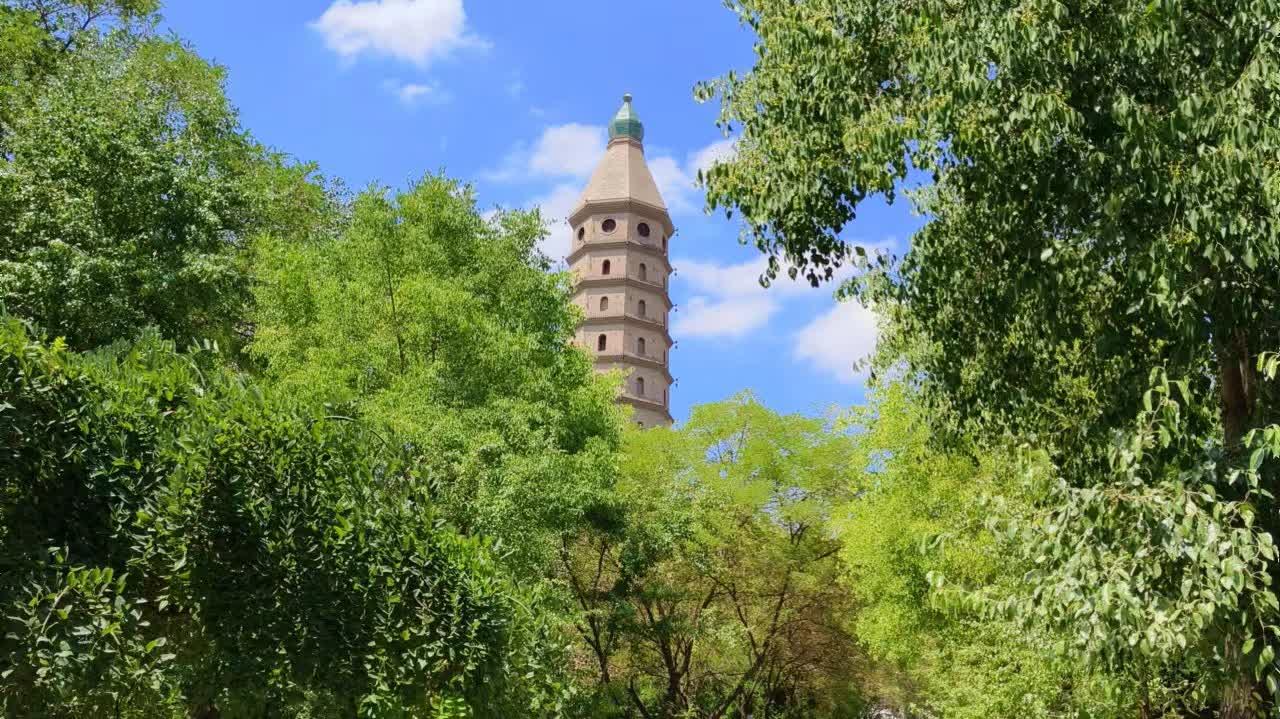 從承天寺稍往西北約四公里,即是建於北朝至隋唐時期的海寶塔,今日之相在清朝中葉定型。其後經一九二〇年里氏八點五級的海原大地震,一九三九年迭遭日軍空襲,如今塔影悠悠,孤危入雲。