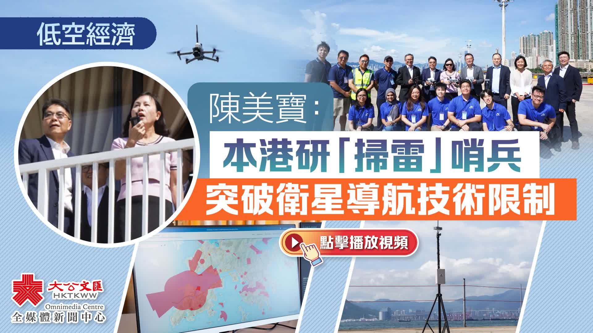 「衛星導航干擾預警機系統」充分體現了「官產學研」的結合,由本地科研企業領頭、招商局集團為系統提供了測試場地,香港生產力促進局亦為項目提供了實驗室的技術支援。陳美寶說,「監管沙盒」自3月推展至今,已有不少項目「起飛」,涵蓋食物配送、工地安全、道路巡查、斜坡監察、基建勘察、緊急救援等。低空經濟不只局限於物流配送或無人機表演,亦可發展無人機防衛偵測干擾源作飛行修正,深化低空經濟在香港的長遠發展。
