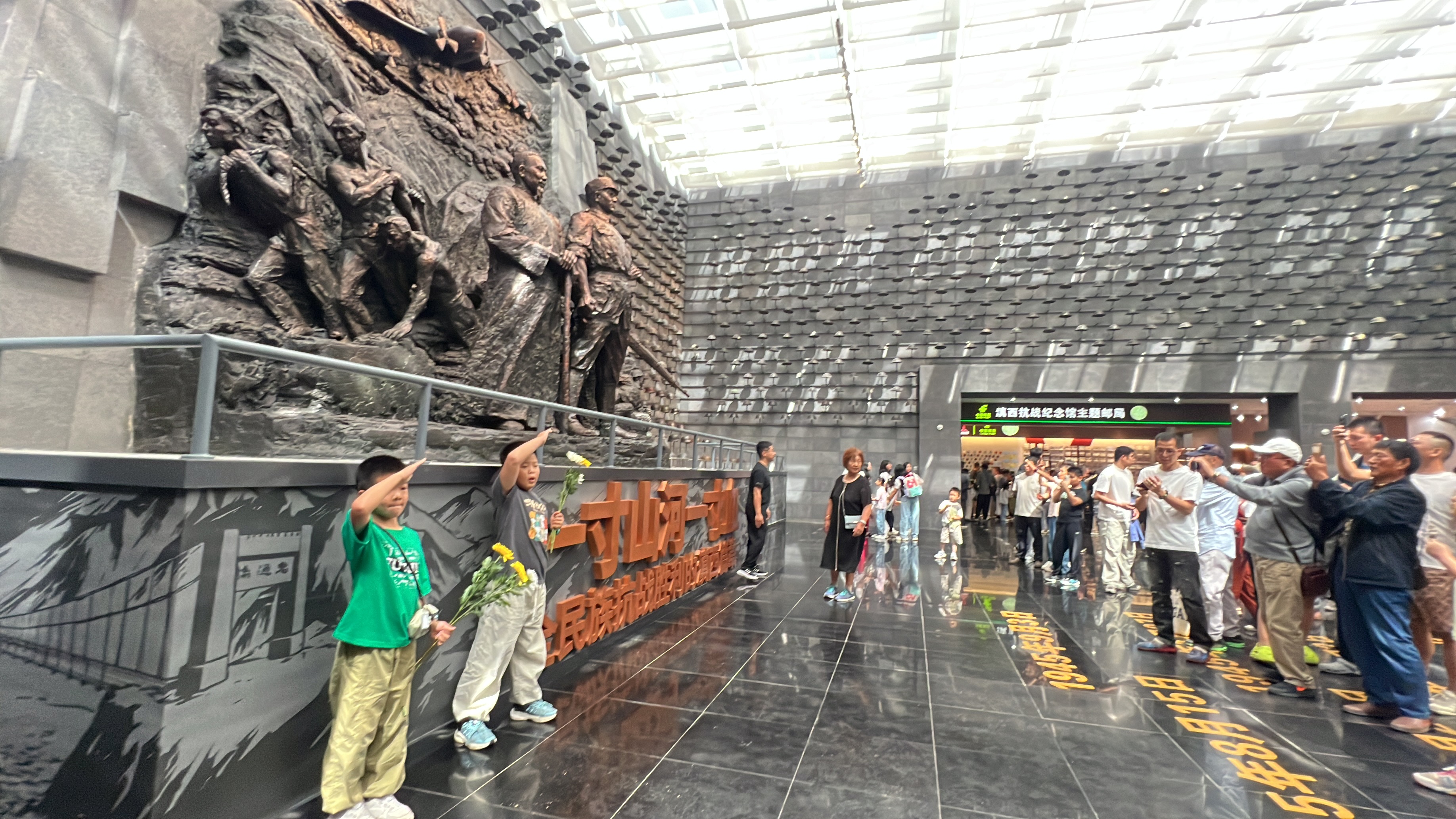 滇西抗戰紀念館今天接待了來自全國各地的萬餘名遊客,來自北京的陳先生表示,趁着假期帶着孩子來了解歷史,來到這裏第一次全面了解滇西抗戰「一寸山河一寸血」的悲壯,讓他們由衷感到今天生活的來之不易。在遠征軍名錄牆前,擺滿了人們獻上的菊花,表達着大家當下「緬懷先烈、珍愛和平」的心意。