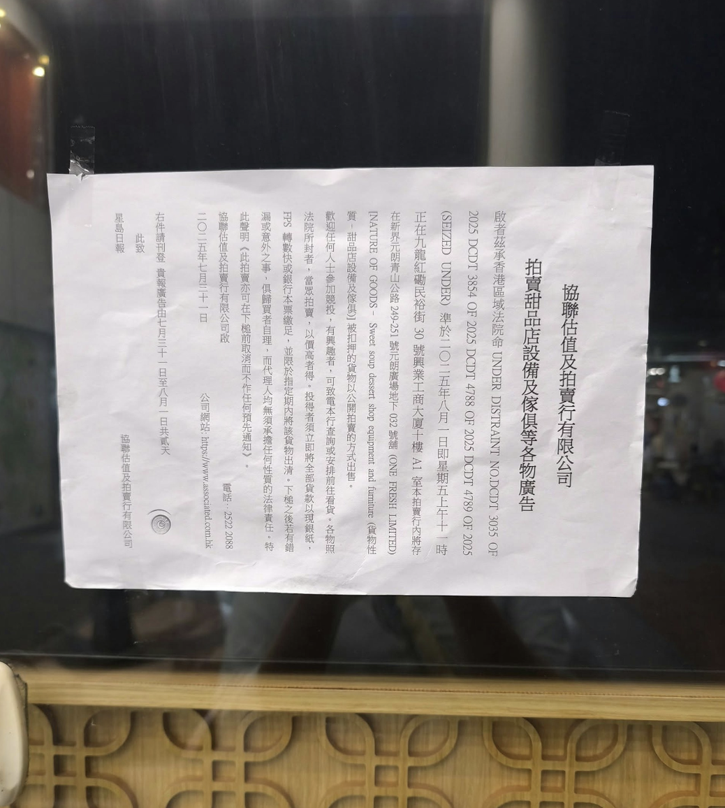 翻查法庭紀錄,鮮芋仙旗下多間以「One Fresh」或「Next Step」名義運營的公司,自2023年起出現零星欠租情況,2025年問題加劇,1月至7月底被追租近570萬元,涉及荃灣、屯門、觀塘等14間分店,其中至少11間屬鮮芋仙,7間已結業。元朗及粉嶺分店更被執達吏封舖,店內設備及傢具遭拍賣。
