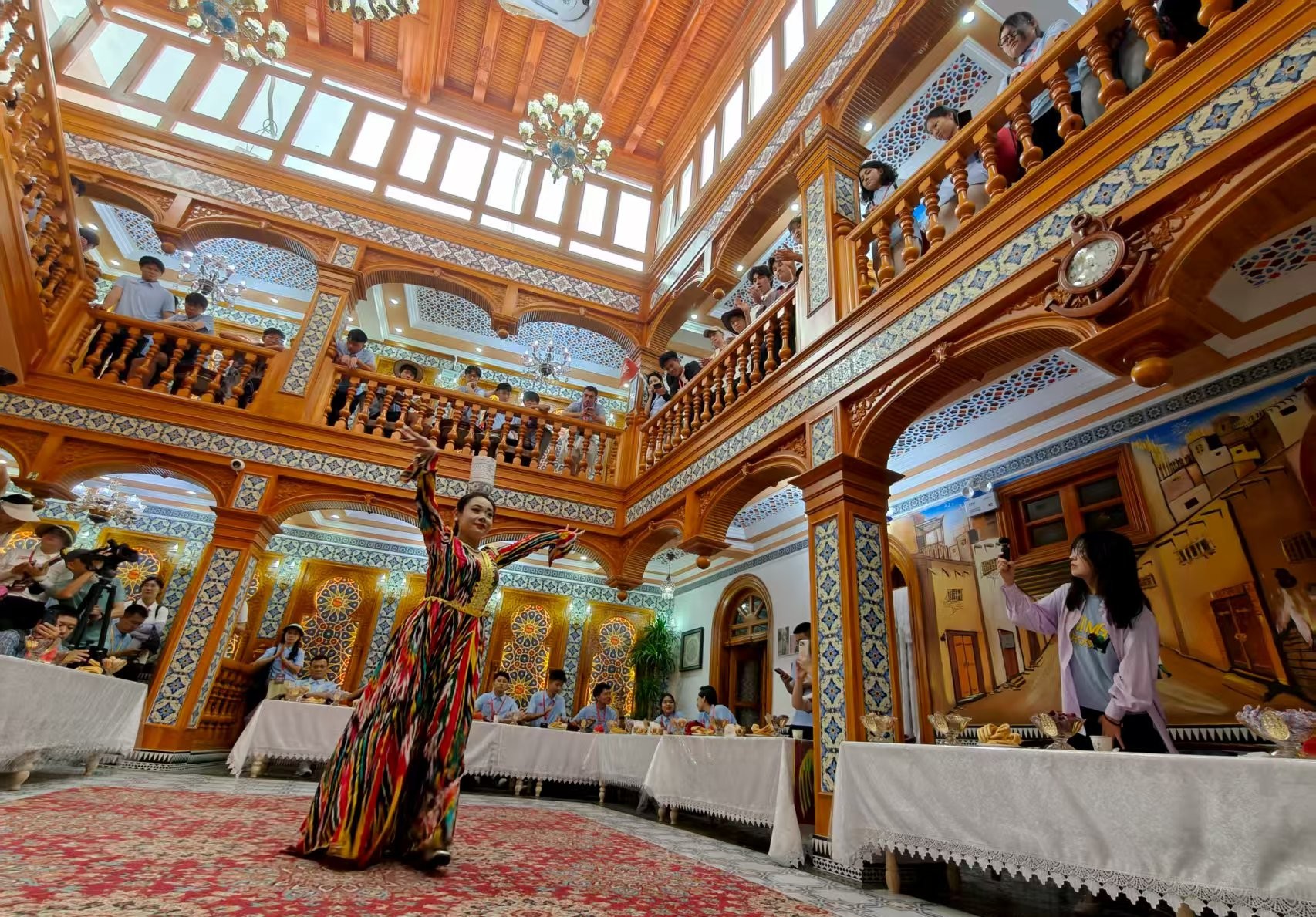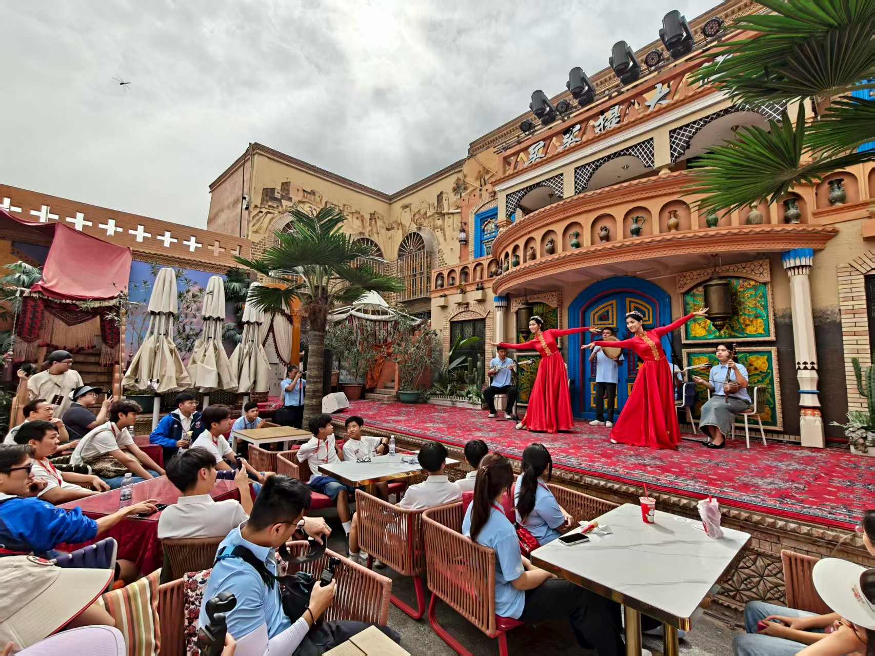 啟動儀式結束後,交流團走進喀什古城,親身感受當地的多元文化。期間,粵港澳與新疆的青少年分別帶來才藝表演,用活力滿滿的節目展現少年風采;隨後,大家一同跳起特色新疆舞,在歡快的民族舞蹈中拉近彼此距離、增進感情。喀什古城歷史悠久、文化底蘊豐厚、民俗風情獨特,素有 「不到喀什不算到新疆,不到古城不算到喀什」的美譽。作為我國少有的特色迷宮式城市街區和生土建築群,古城景區與居民生活區融為一體,充滿濃郁的生活氣息與人文魅力。