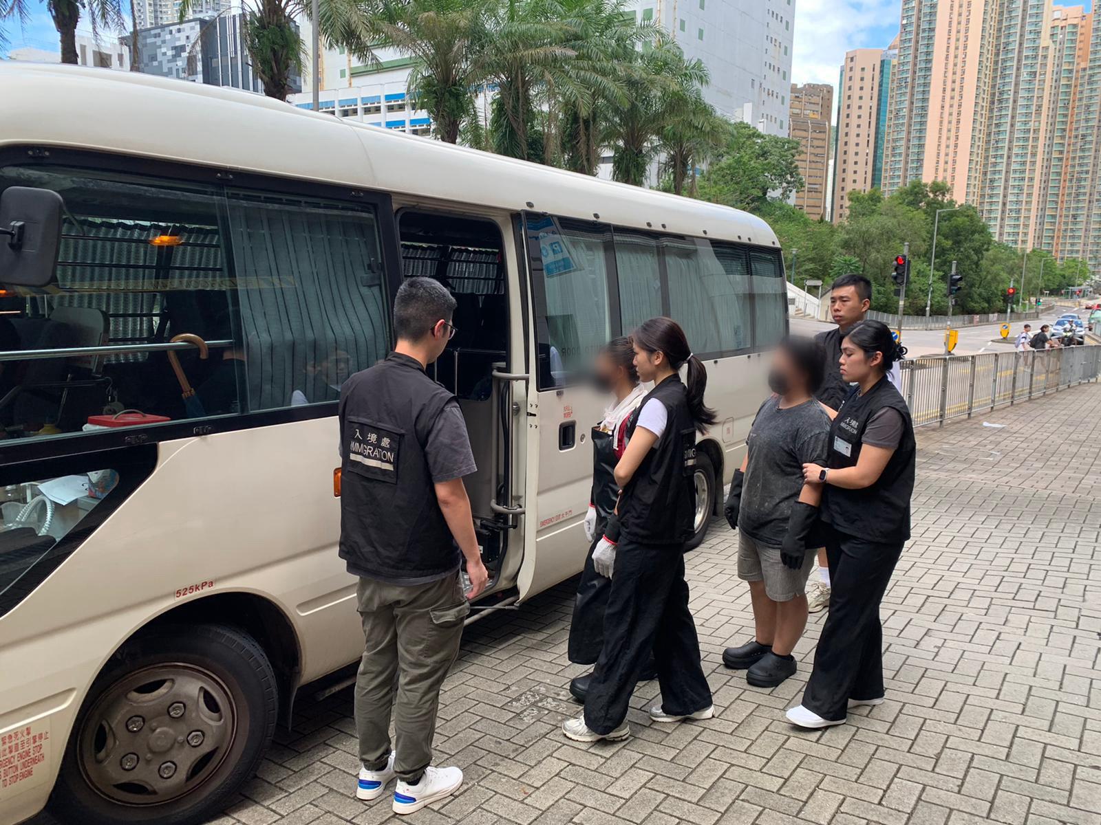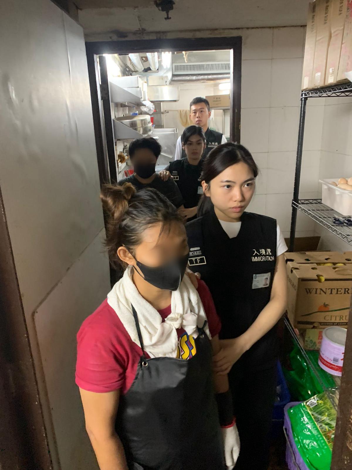 被捕的六名懷疑非法勞工均為女子,年齡介乎二十五歲至五十四歲,包括五名非華裔人士及一名內地居民,分別涉嫌從事洗碗員、店員和侍應的工作。五名非華裔被捕人士中,三人為前外傭並已在港逾期逗留,另外兩人則持有不允許僱傭工作的擔保書。其中,於將軍澳一間食肆從事洗碗工作的一名女子,亦因懷疑行使他人身份證見工而被捕。