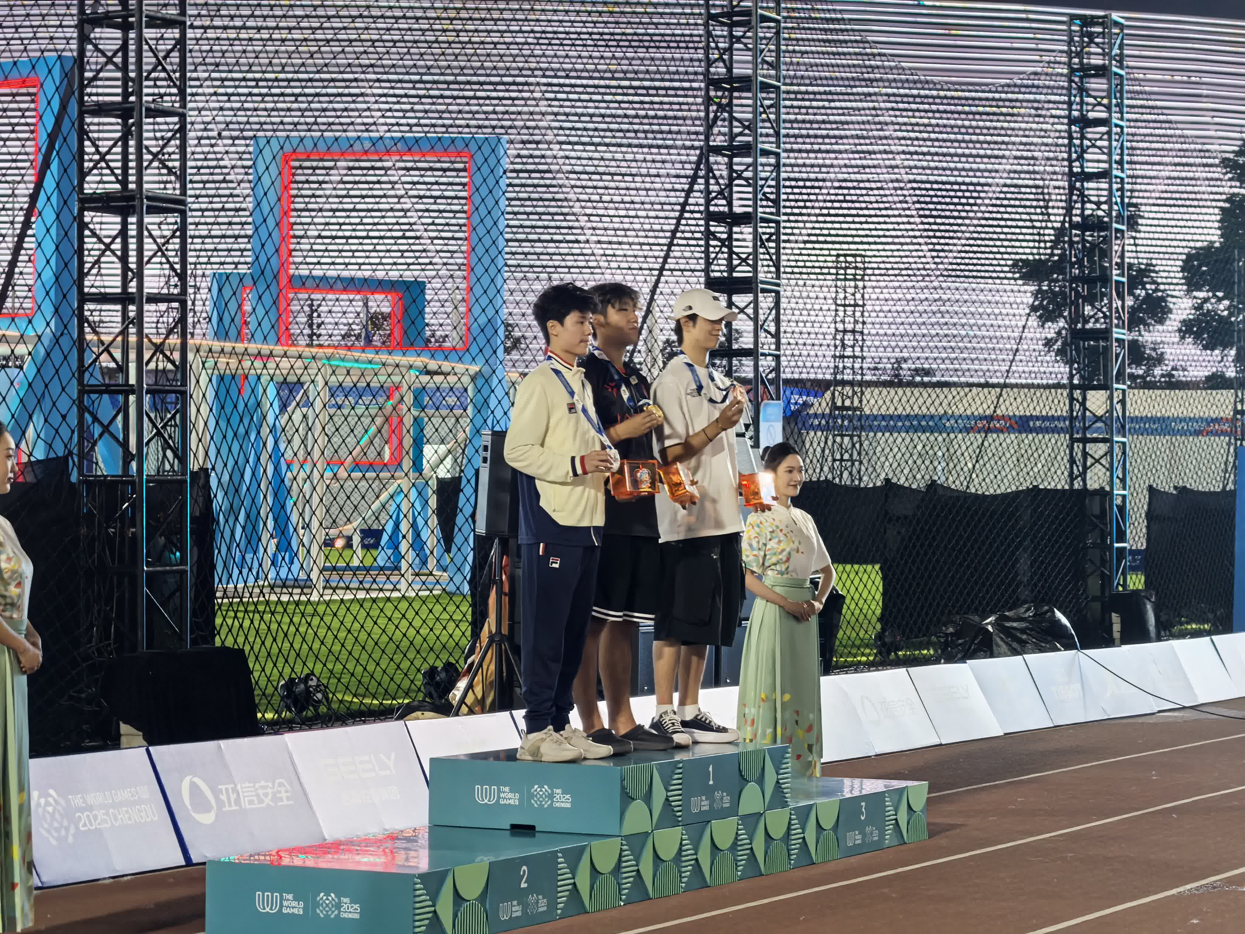 在五輪補充賽中,關竣仁穩紮穩打,連續取得晉級資格,最終「出人意料」地闖入了決賽。決賽中,一旦有運動員率先贏得兩場比賽,該運動員即成為成都世運會無人機競速項目的冠軍。前兩場比賽,日、韓選手各勝一局,第三場比賽中,有無人機冒煙導致比賽中斷。最終,日本選手HASHIMOTO Yuki和關竣仁進入金銀牌的爭奪,關竣仁發揮穩定,為港隊贏下成都世運會第6枚獎牌。