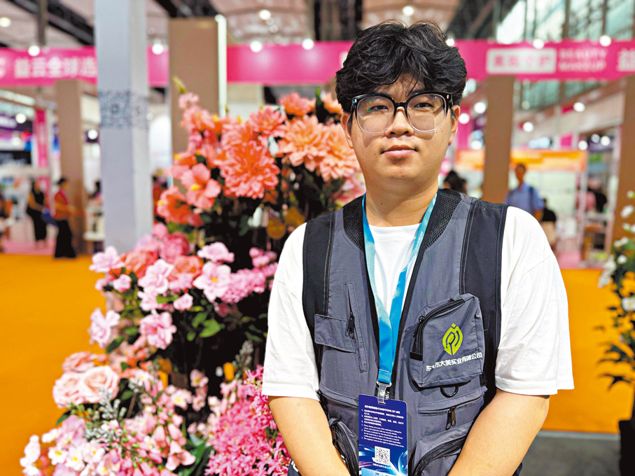 仿真環保聖誕樹亦是熱門節日禮品。在展館另一側,東莞市大美實業有限公司展出的「會散發香氣」的聖誕樹,吸引不少海外買家駐足拍照。「我們主力做美國市場,節日期間必備的仿真聖誕樹就是最近忙着出貨的大頭。」公司總監林俊迪說,「有的客戶雖然未下單, 但已經提前預定,讓我們先將貨品生產好囤在倉庫,等他們一旦確認就可以馬上發貨。」公司專攻仿真綠植,今年新品加入天然香味,模擬「真實森林氣息」。「以前9月才開始接聖誕訂單,今年6、7月就已經下單。」林俊迪表示,公司客戶多來自美國和歐洲,今年美國訂單佔比下滑到三成,但歐洲市場份額上升。他說,因為聖誕訂單比較提前且集中,公司近期已經考慮在美國設立一個海外倉。「客戶在跨境電商下單的時候,發貨也快,而且補貨更快,也能減少清關時間。」